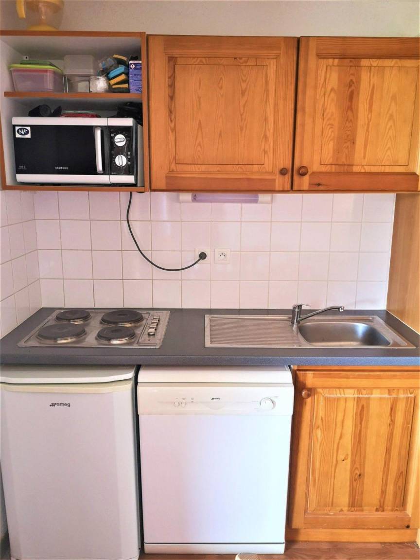 Fläche von ungefähr 36 m². 3te Etage. Orientierung : West. Wohnzimmer mit Klappschlafcouch. Schlafzimmer mit Doppelbett. offener Schlafbereich mit 2 Stockbetten. Kochnische mit Wasserkocher, Kaffeemaschine, Geschirrspülmaschine, Mikrowellenherd, 4 elektronische Herdplatten, Kühlschrank. Badezimmer mit Badewanne. separates WC. Balkon. Die oberen Betten sind nicht für Kinder unter 6 Jahren geeignet.