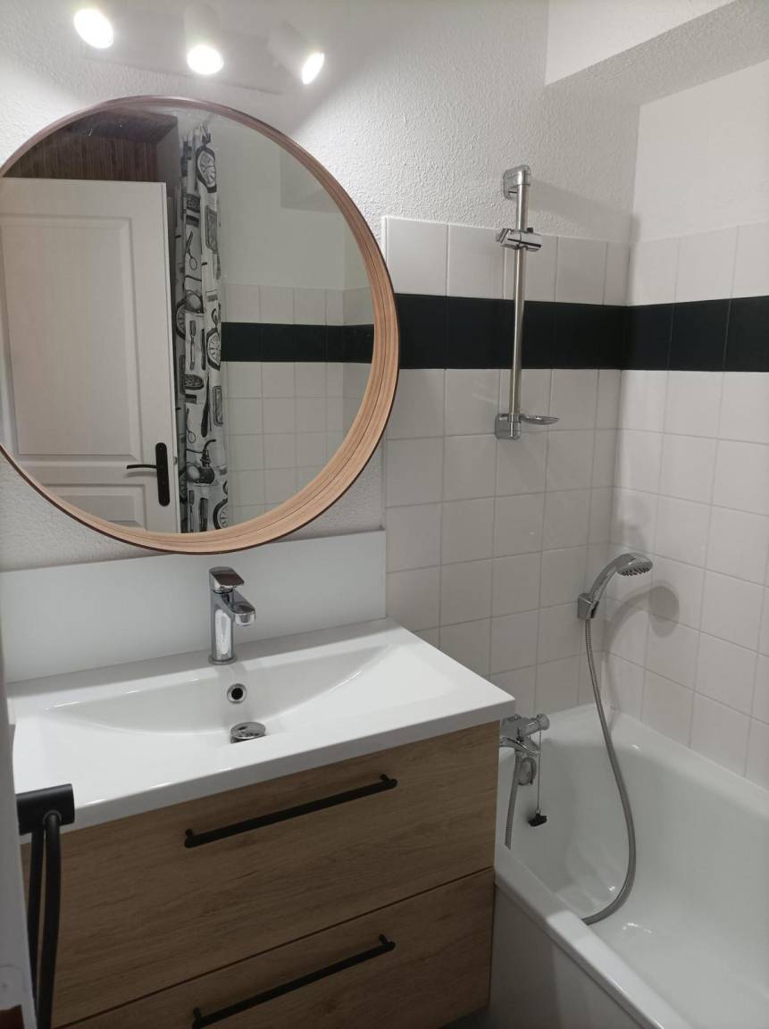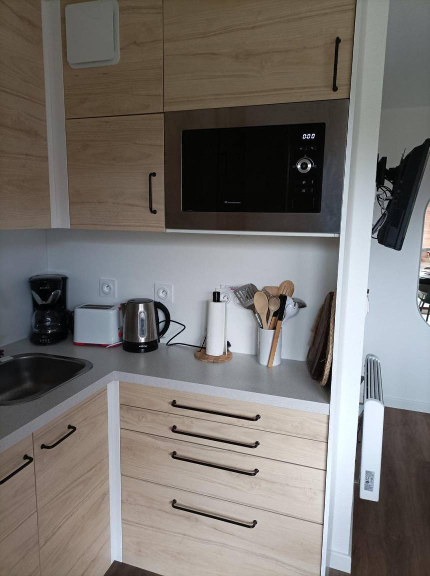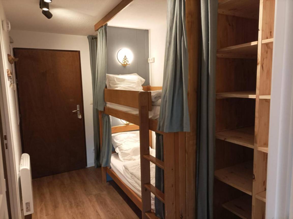 Fläche von ungefähr 32 m². 1te Etage. Orientierung : Süd, West. Wohnzimmer mit Klappschlafcouch (160). Schlafzimmer mit Doppelbett. offener Schlafbereich mit 2 Stockbetten. Kochnische mit Kaffeemaschine (à filtre), Backofen, Toaster, Geschirrspülmaschine, Mikrowellenherd, 2 Induktionsherdplatten, Kühlschrank. Badezimmer mit Waschmaschine. separates WC. Staubsauger. Die oberen Betten sind nicht für Kinder unter 6 Jahren geeignet.