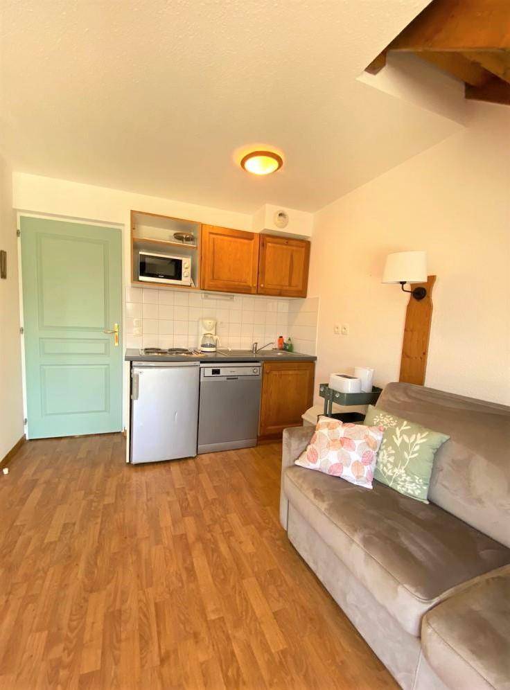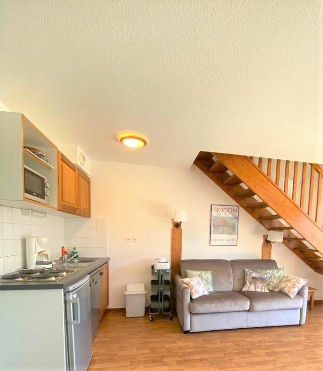Fläche von ungefähr 55 m². Blick berg. Wohnzimmer mit Klappschlafcouch. 2 Schlafzimmer mit 2 Einzelbetten. offener Schlafbereich mit 2 Stockbetten. Kochnische mit Kaffeemaschine, Toaster, Geschirrspülmaschine, Mikrowellenherd, elektronische Herdplatten, Kühl-Gefrier-Kombination. Waschräume mit Dusche. separates WC. Badezimmer mit Badewanne, WC. Terrasse. Die oberen Betten sind nicht für Kinder unter 6 Jahren geeignet.