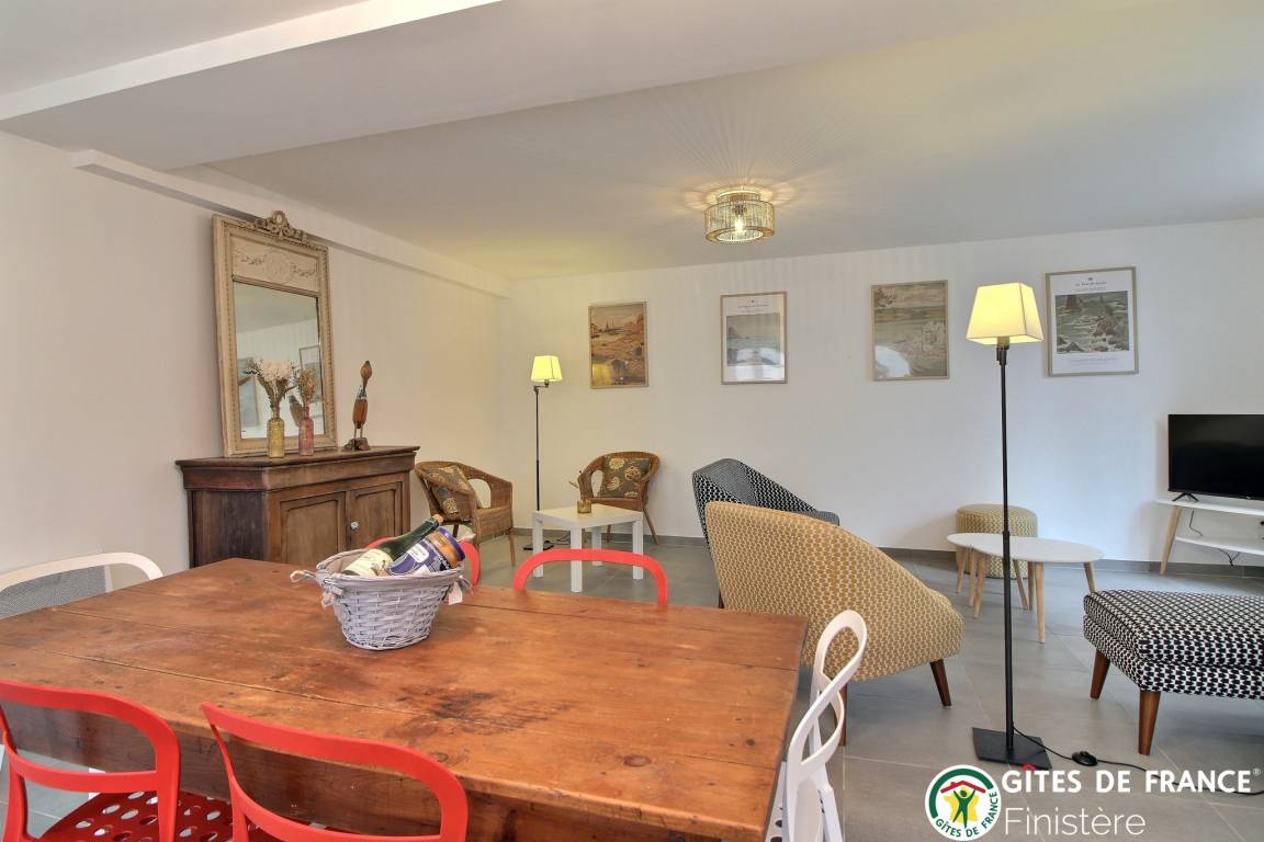„Location très bien située pour rayonner vers crozon et le reste du Finistère. Le coin terrasse et piscine sont très agréables même si les journées courtes et fraîches de fin octobre en ont limité l'usage.“