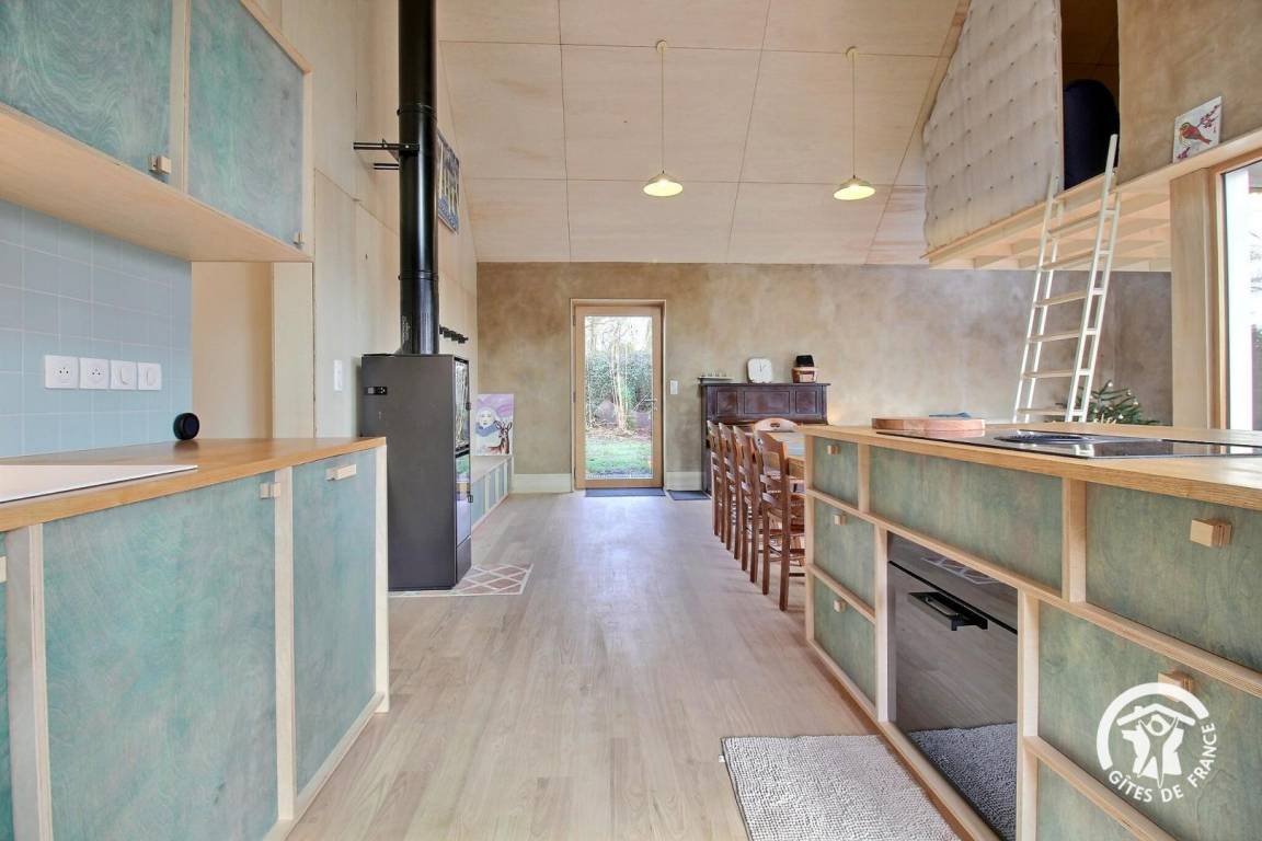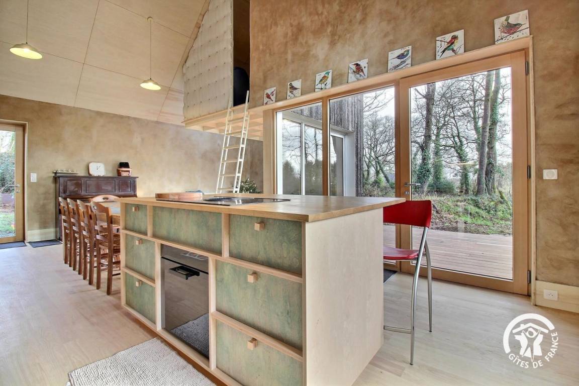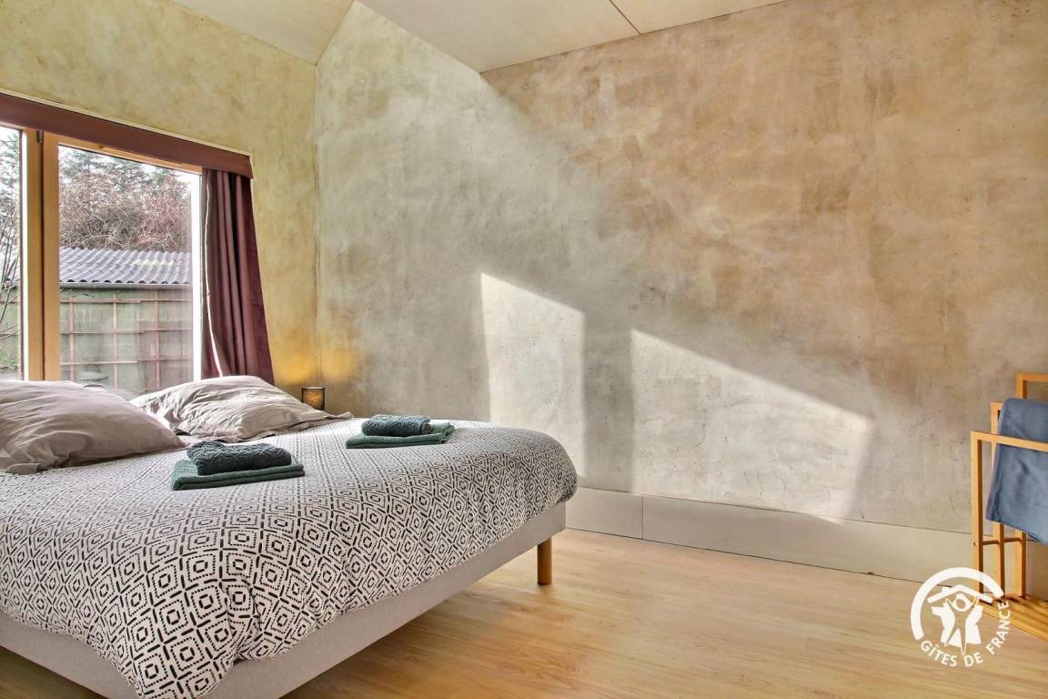 Dieses nahezu passive, umweltfreundliche Ferienhaus besticht durch seine nachhaltige und ästhetisch ansprechende Bauweise: Holzrahmenbau, Strohballendämmung, Lehmputz und eine elegante Fassade aus verkohltem Holz. Jedes Detail wurde sorgfältig gestaltet, um eine warme, gesunde und beruhigende Atmosphäre zu schaffen, die sich harmonisch in die Umgebung einfügt. In idealer Lage nahe dem Ortskern, am Ende einer Sackgasse, bietet das Ferienhaus eine grüne und außergewöhnlich ruhige Umgebung. Genießen Sie hier eine wahre Oase der Ruhe und erreichen Sie gleichzeitig Geschäfte und Dienstleistungen bequem zu Fuß. Das Ferienhaus ist der perfekte Ort, um neue Energie zu tanken, die Region zu entdecken und authentisches Wohnen in einer modernen, komfortablen und umweltbewussten Unterkunft zu erlebe