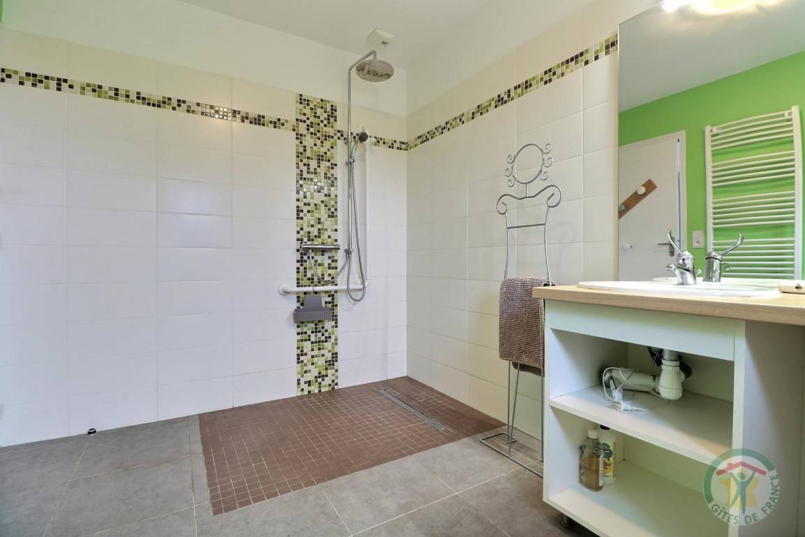 „Nous sommes resté que 3 jours sur sept cause problème santé. Penser à une chaise PMR pour la douche. Sinon très reposant, calme, ressourçant. Très belle région.“