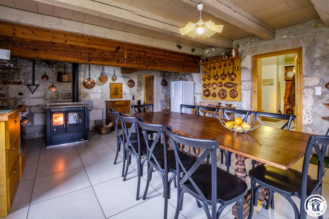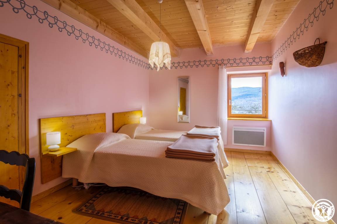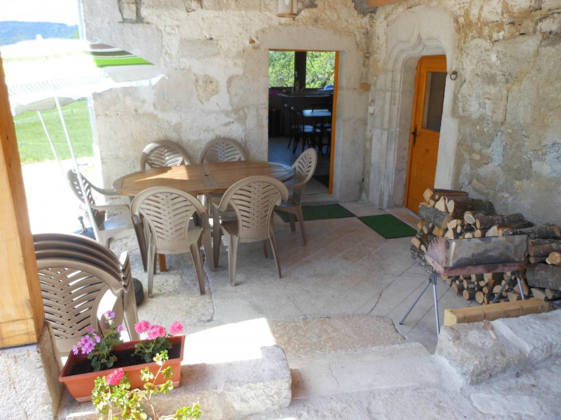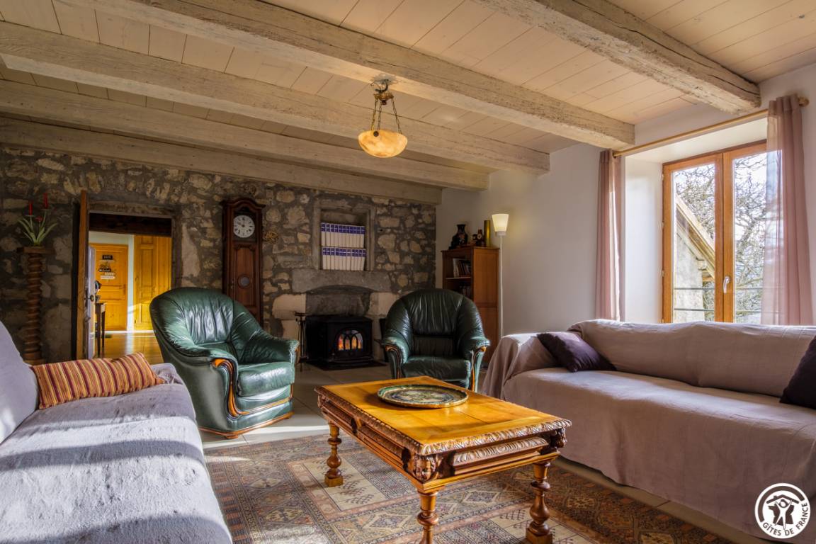 Auf der Hochebene von Retord, auf 1000 m Höhe, große, zweistöckige Doppelhaushälfte für 10 Personen in einem alten Bauernhaus in Valromey. Eingang in einen Flur, funktionale Küche mit Holzofen, Entspannungsraum mit Holzofen, ein Schlafzimmer im Erdgeschoss mit 2 Betten 90*200, Badezimmer (ebenerdige Dusche), separates WC mit Waschbecken. Im 1. Stock ein großer Flur, drei Schlafzimmer, darunter zwei Schlafzimmer mit jeweils zwei Betten 90*200 und ein Schlafzimmer für 4 Personen mit 4 Betten 90*200, Badezimmer, separates WC, Waschküche. Holz- und Elektroheizung. Terrasse, Gartenmöbel und Liegestühle, Grill (Kohle). Diese Gîte wurde komplett renoviert und verfügt über eine hervorragende Wärmedämmung. Sie werden den Charme des Steins und die schönen Balken an der Decke zu schätzen wissen. Ideal, um mit Familie oder Freunden zusammenzukommen und die zahlreichen Winteraktivitäten (Skifahren, Schneeschuhwandern, Rodeln usw.) oder Sommeraktivitäten (Wandern, Erkunden der Flora und Fauna usw.)