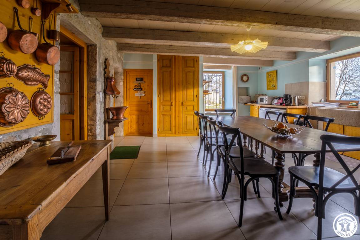 „Le gîte est situé dans le village dans un environnement calme, idéal si on cherche à se mettre au vert. Spacieux et confortable pour de grandes tribus. À mi-chemin entre plaine de l'Ain et Savoie, l'usage de la voiture est indispensable. Balades à proximité.“