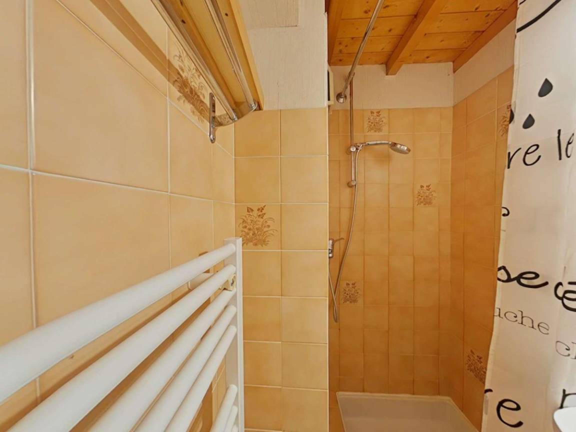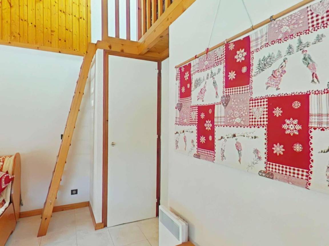 Fläche von ungefähr 27 m². 2te Etage. Orientierung : Süd. Blick berg (Chaîne des Aravis). Wohnzimmer mit Klappschlafcouch (140*190). Zwischengeschoss mit Doppelbett (140*190). offener Schlafbereich mit 2 Stockbetten (80*190). Kochnische mit Fonduegerät, Raclettegerät, Wasserkocher, Kaffeemaschine (filtre), Backofen, Toaster, Mikrowellenherd, 2 Induktionsherdplatten, Kühlschrank. Badezimmer mit Dusche. separates WC. Balkon. Die oberen Betten sind nicht für Kinder unter 6 Jahren geeignet.