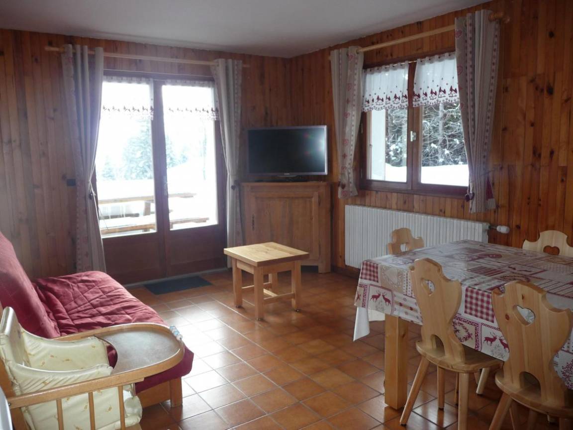 Fläche von ungefähr 103 m². 2te Etage. Orientierung : Süd. Blick berg (chaîne des Aravis). Wohnzimmer mit Sofa, DVD-Spieler, TV. Schlafzimmer ab 13.85 m² mit Klimatisierung, Doppelbett. Schlafzimmer ab 10.10 m² mit Doppelbett (160). Schlafzimmer ab 10.10 m² mit 2 Einzelbetten. Zwischengeschoss mit 2 Einzelbetten. offener Schlafbereich ab 5.35 m² mit 2 Stockbetten. Küche mit Fonduegerät, Raclettegerät, Wasserkocher, Kaffeemaschine, Gefrierschrank, Backofen, Geschirrspülmaschine, Mikrowellenherd, 2 Glaskeramikkochfelder, Kühlschrank. Badezimmer mit Badewanne, Waschmaschine, Haartrockner, Wäschetrockner, Handtuchtrockner. Badezimmer mit Dusche. 2 separate WCs. Balkon mit Gartentisch und -stühle. Die oberen Betten sind nicht für Kinder unter 6 Jahren geeignet.