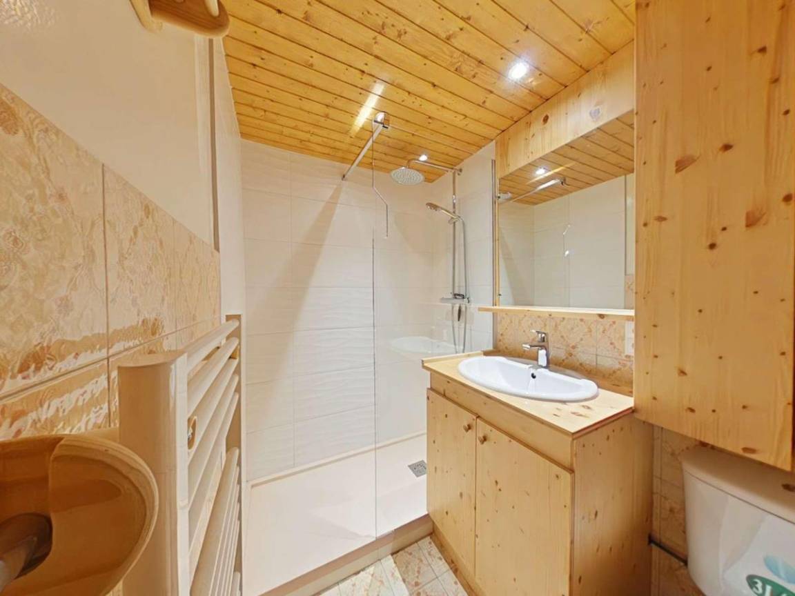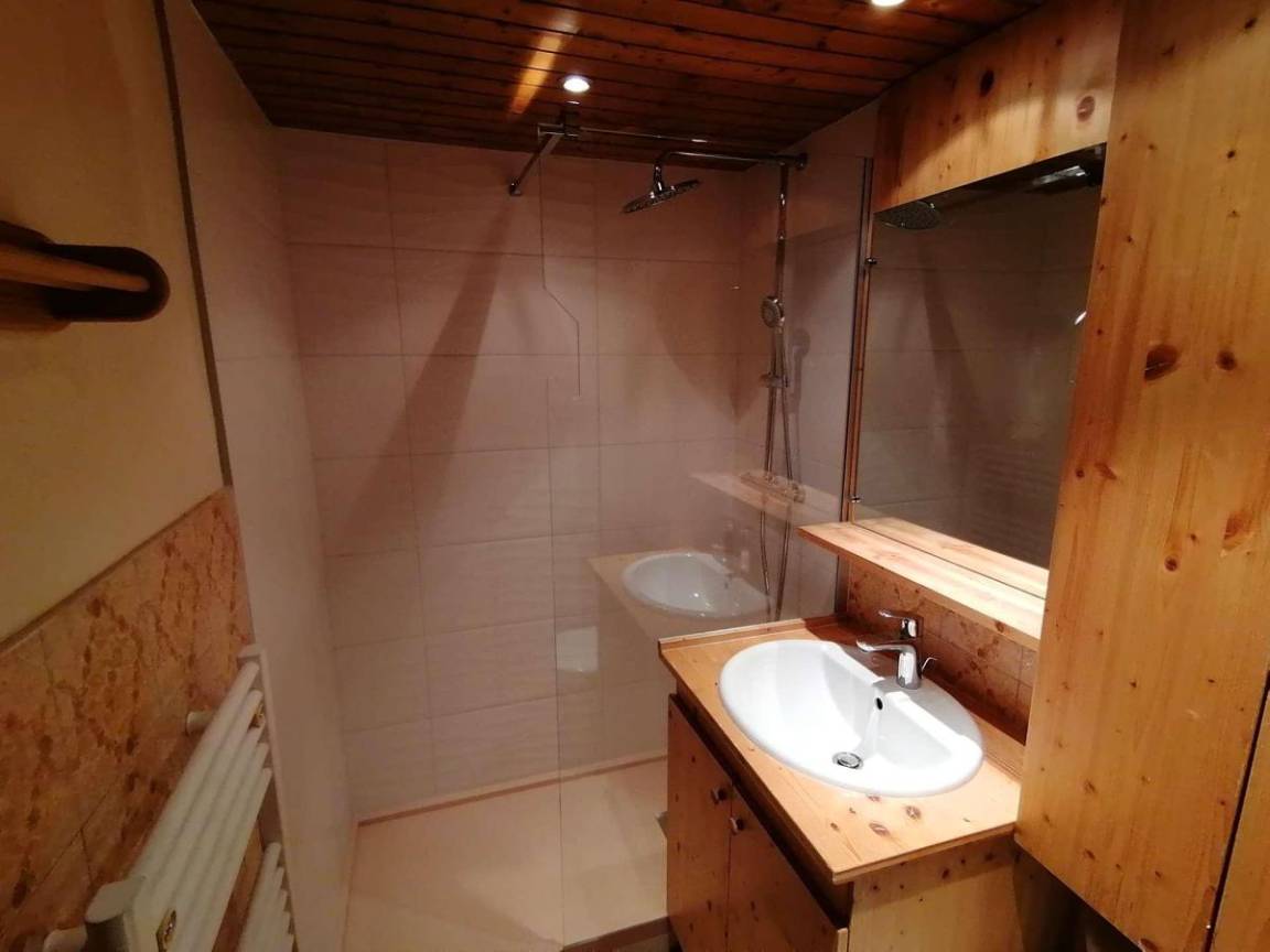 Fläche von ungefähr 51 m² enthält 12 m² unter 1,80 m. 2te Etage. Orientierung : Süd, West. Wohnzimmer ab 15.68 m² mit Klappschlafcouch (140*190), Kamin (décorative), TV. Schlafzimmer ab 9.00 m² mit Doppelbett (140*190). Zwischengeschoss mit 3 Einzelbetten (80*190). Kochnische mit Raclettegerät, Wasserkocher, Kaffeemaschine (filtre), Backofen, Toaster, Geschirrspülmaschine, Mikrowellenherd, elektronische Herdplatten, Kühlschrank. Waschräume mit Haartrockner, Handtuchtrockner, WC. Balkon. Staubsauger, , Bügeleisen.