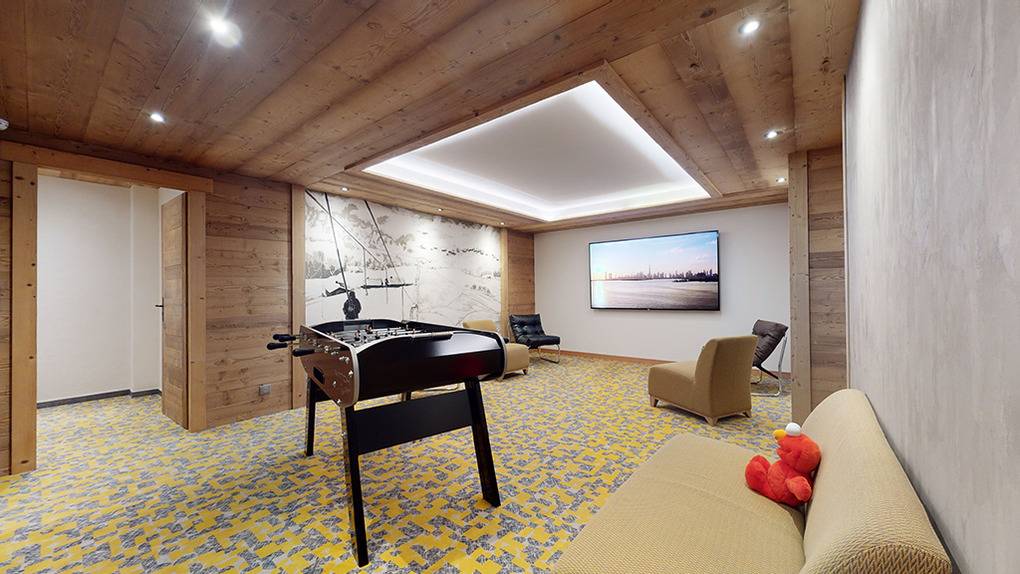 Im Haus: Gemeinschaftlicher Spabereich mit Sauna und Massagedusche, Babytischfussball, großer Smart-TV, Lichtspiele. Waschraum mit Waschmaschine und Trockner. Kostenloser Verleih von Raclette-, Fonduegeräte an der Rezeption