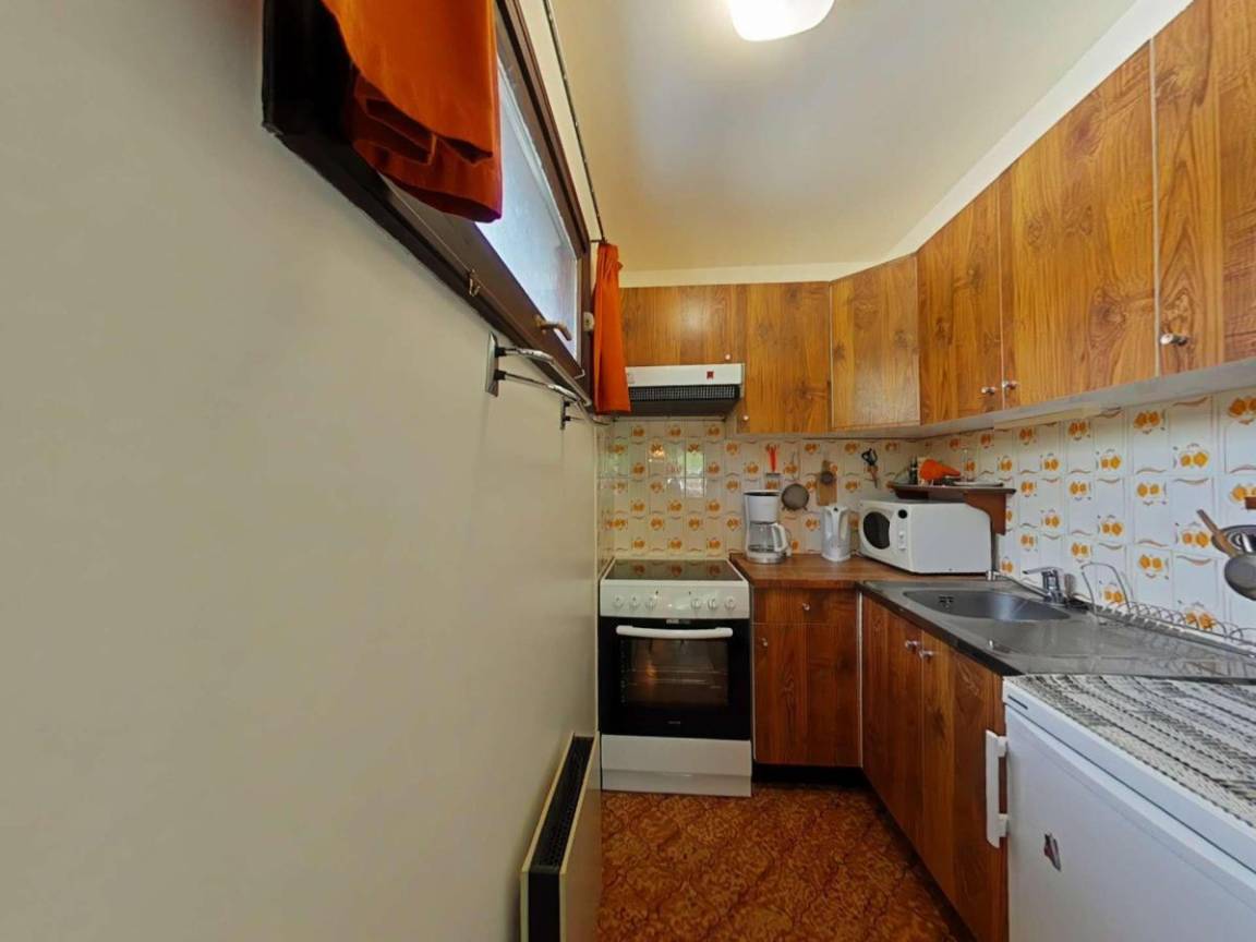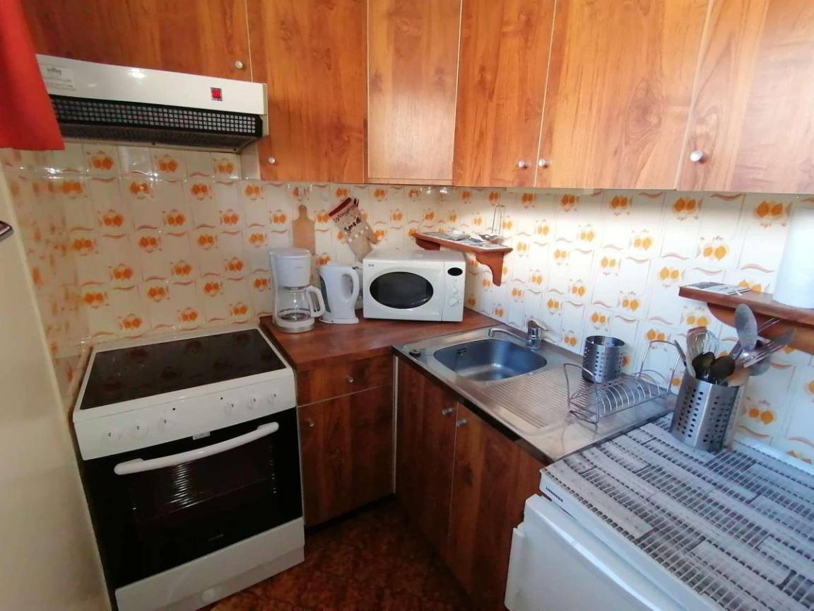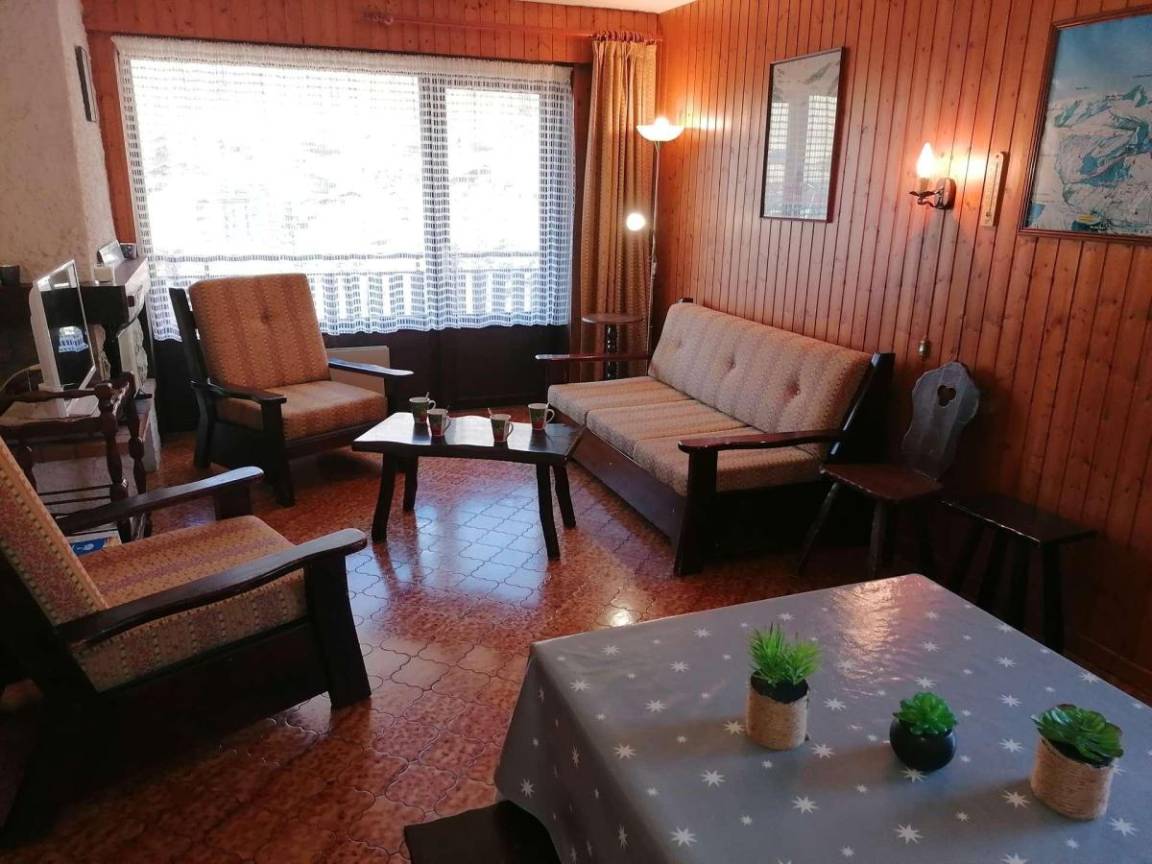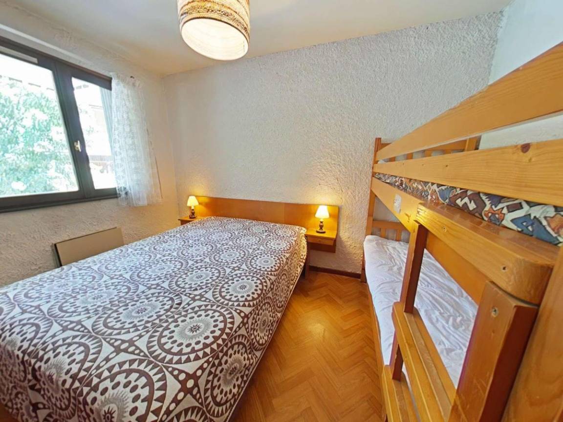 Fläche von ungefähr 45 m². Erdgeschoss. Orientierung : Nord, West. Blick dorf. Wohnzimmer mit , Klappschlafcouch. Schlafzimmer mit Doppelbett (140*190), 2 Stockbetten (70*1910). Kochnische mit Wasserkocher, Kaffeemaschine (à filtre), Backofen, Mikrowellenherd, 2 Glaskeramikkochfelder, Kühlschrank (100 litres). Badezimmer mit Badewanne, Haartrockner. separates WC. Die oberen Betten sind nicht für Kinder unter 6 Jahren geeignet.