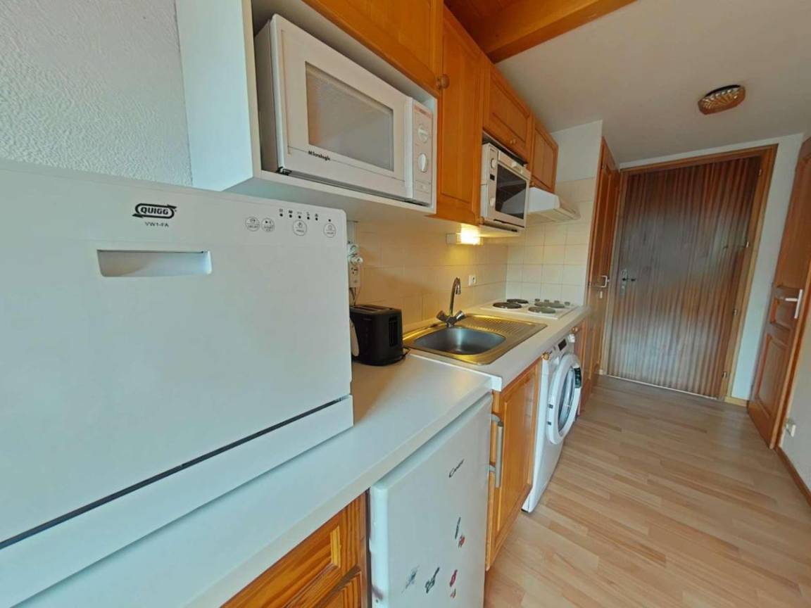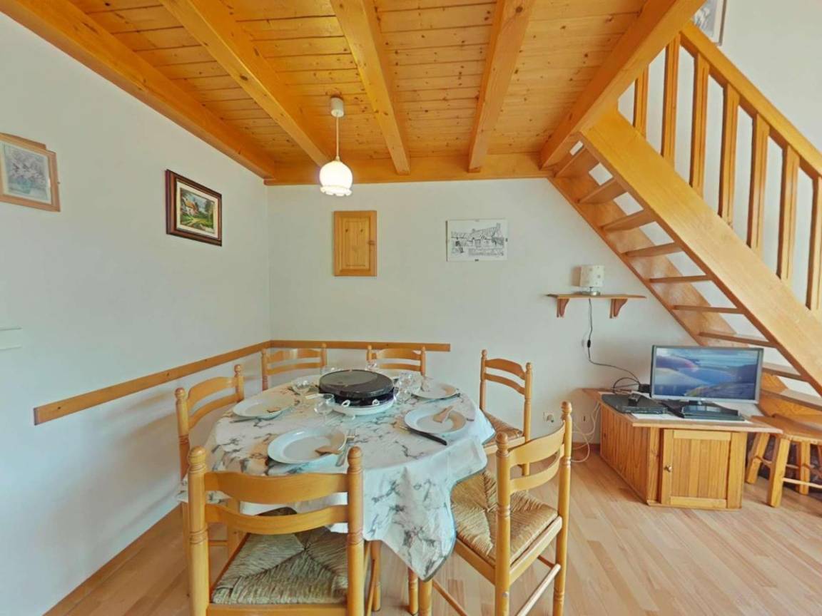 Fläche von ungefähr 37 m² enthält 6 m² unter 1,80 m. 2te Etage. Orientierung : Nord, West. Wohnzimmer ab 14.80 m² mit Klappschlafcouch (130*190), TV. Zwischengeschoss mit Doppelbett (140*190). offener Schlafbereich ab 4.00 m² mit Doppelbett (140*190). Kochnische mit Fonduegerät, Raclettegerät, Wasserkocher, Kaffeemaschine (filtre), Backofen, Toaster, Mikrowellenherd, , 4 elektronische Herdplatten, Kühlschrank. Badezimmer mit Badewanne, Haartrockner. separates WC. Balkon mit Gartentisch und -stühle. Bügeleisen, Waschmaschine.