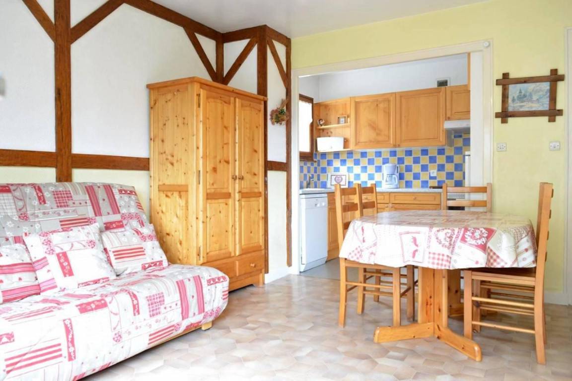Die Residenz La Pointe Percée ohne Aufzug befindet sich im Herzen des Dorfes Le Grand Bornand, nur 200 Meter vom Tourismusbüro und den Geschäften des Resorts entfernt. Der Freizeitbereich mit dem Wassersportzentrum und den Aktivitäten befindet sich etwa 200 Meter von der Residenz entfernt. Öffentliche Parkplätze stehen in der Nähe zur Verfügung. Fläche von ungefähr 38 m². Erdgeschoss. Orientierung : West. Wohnzimmer mit Klappschlafcouch (140*190). Schlafzimmer mit Doppelbett (140*190), 2 Stockbetten (80*190). Kochnische mit Kaffeemaschine (filtres), Backofen, Toaster, Geschirrspülmaschine, Mikrowellenherd, 3 Glaskeramikkochfelder, Kühlschrank. Waschräume mit Dusche. separates WC. Waschmaschine. Die oberen Betten sind nicht für Kinder unter 6 Jahren geeignet.