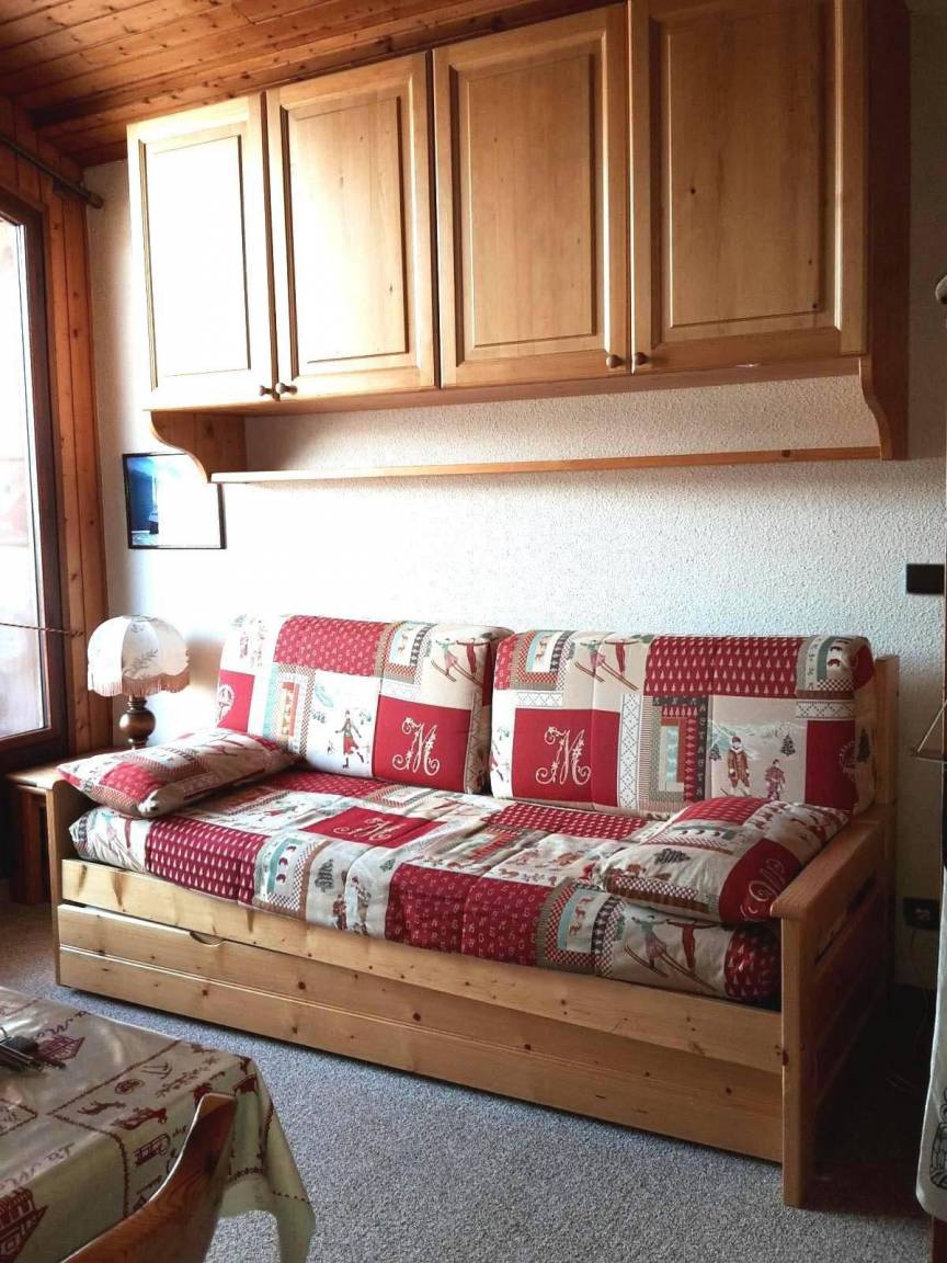 Fläche von ungefähr 29 m². 1te Etage. Orientierung : Nord, Süd. Wohnzimmer ab 13.00 m² mit Ausziehschlafcouch für 2 Personen. offener Schlafbereich mit Einzelbett. kleines zimmer ab 7.30 m² mit Doppelbett. Kochnische mit Raclettegerät, Wasserkocher, Kaffeemaschine (filtres), Backofen, Toaster, Geschirrspülmaschine, 2 Glaskeramikkochfelder, Kühlschrank. Badezimmer mit Sitzbadewanne. separates WC. Balkon mit Gartentisch und -stühle.