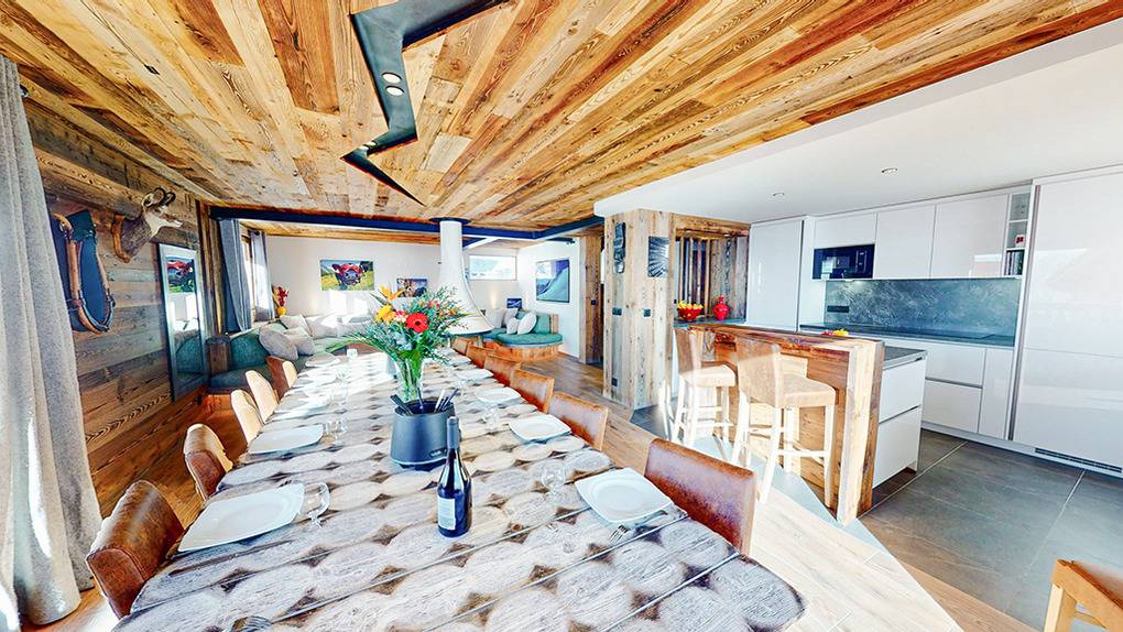 Haus: Großzügiges Chalet mit hohem Komfort: Spabereich mit Sauna und Spielbad, 6 Bäder, Kaminofen, Panorama-Terrasse. Gepflegtes 9-Zimmer-Haus mit 285 qm Wohnfläche. Nichtraucherhaus. Gemütlich-wohnliches Ambiente, Holzvertäfelung in fast allen Zimmern. Moderne, geschmackvolle Einrichtung. Switch-Konsole. Kostenloser Internetzugang über W-Lan. Vom Wohnraum und Balkon aus, herrlicher Blick auf die Skipisten und auf das Dorf Chinaillon. Service: alle Betten sind bei Ankunft bezogen. Handtücher, Badeteppiche vorhanden. Badezimmer mit Handtuchtrockner, Fön. Zentralheizung. Terrasse und Balkon mit Sitzmöbeln, Liegen, elektrischem Grill. 5 Pkw-Stellplätze.