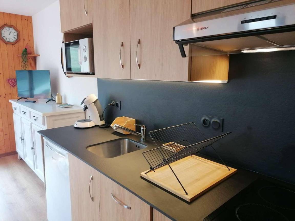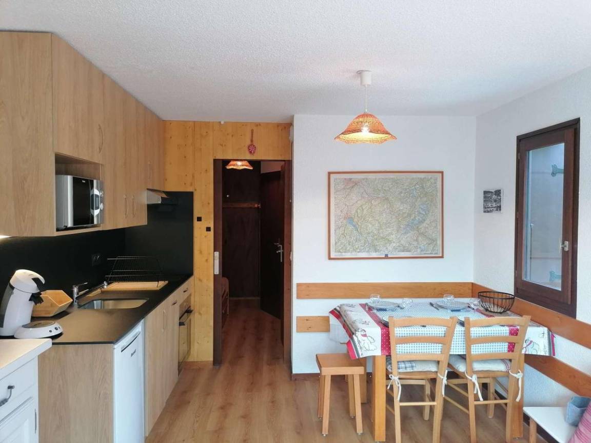 Die Residenz L'Etoile des Neiges (ohne Aufzug) befindet sich in Le Grand Bornand Chinaillon im Gebiet „Le Samance", 1 km vom Zentrum entfernt. Im Umkreis von 600 Metern finden Sie den Freizeitbereich mit Spielen und Aktivitäten, das Tourismusbüro und die Geschäfte des Resorts. Hinweis: Parkplätze im Freien stehen je nach Verfügbarkeit zur Verfügung. Fläche von ungefähr 26 m². 1te Etage. Orientierung : Süd. Wohnzimmer ab 13.53 m² mit BZ-Sofas (140). offener Schlafbereich mit Einzelbett (70). offener Schlafbereich ab 3.50 m² mit 2 Stockbetten (70). Kochnische mit Kaffeemaschine (senseo), Backofen, Toaster, Geschirrspülmaschine, Mikrowellenherd, 2 Induktionsherdplatten, Kühlschrank. Badezimmer mit Sitzbadewanne. separates WC. Balkon mit Gartentisch und -stühle. Die oberen Betten sind nicht für Kinder unter 6 Jahren geeignet.