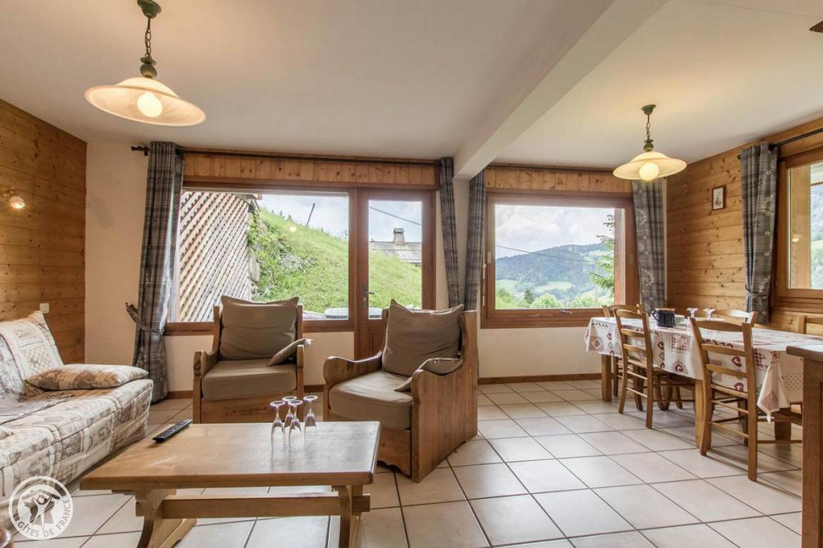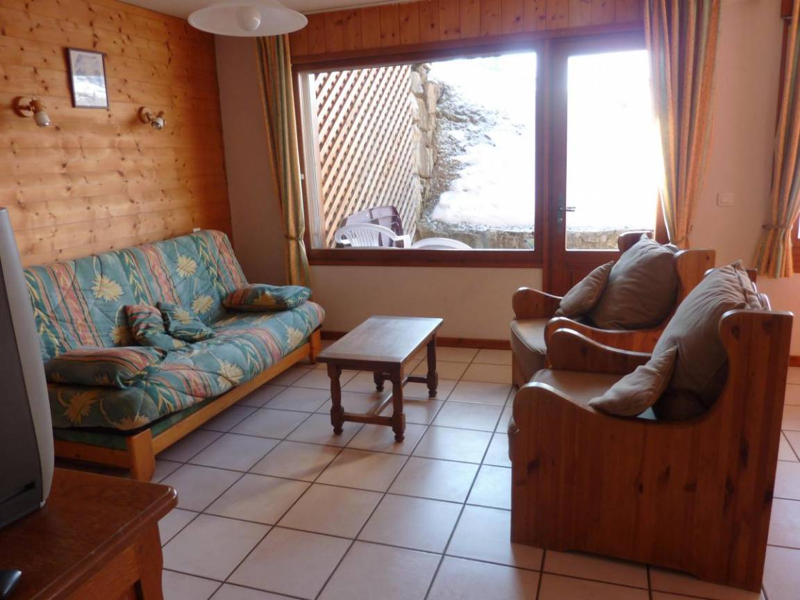Fläche von ungefähr 55 m². Erdgeschoss. Orientierung : Nord-West. Blick berg. Wohnzimmer ab 23.75 m² mit Klappschlafcouch, Kamin. Schlafzimmer ab 8.51 m² mit Doppelbett. Schlafzimmer ab 10.58 m² mit 2 Einzelbetten. Kochnische mit Fonduegerät, Raclettegerät, Backofen, Geschirrspülmaschine, 4 elektronische Herdplatten, Kühl-Gefrier-Kombination (120L). Badezimmer mit Badewanne, Handtuchtrockner. separates WC. Terrasse mit Gartentisch und -stühle. Garten.