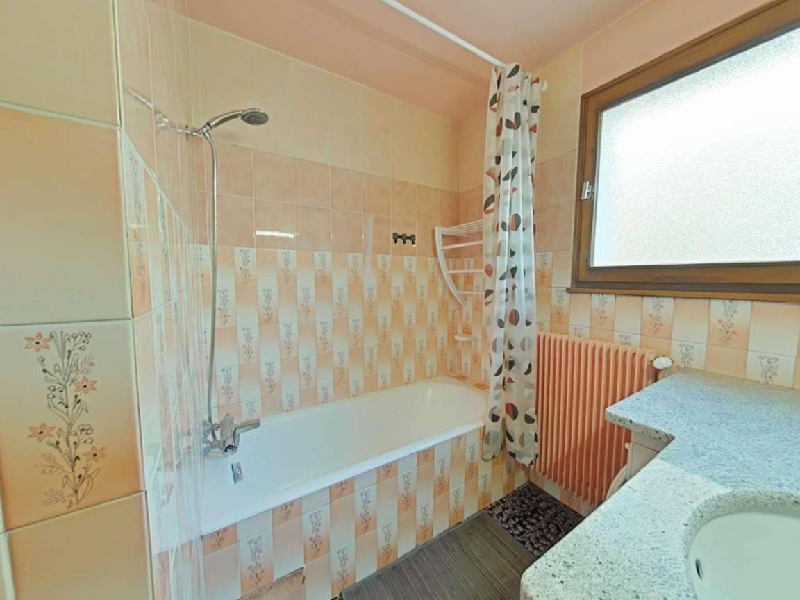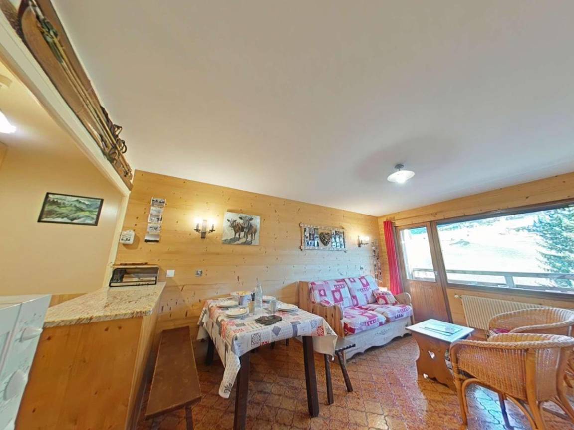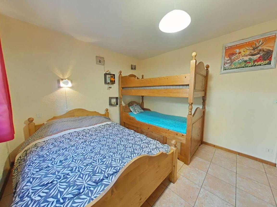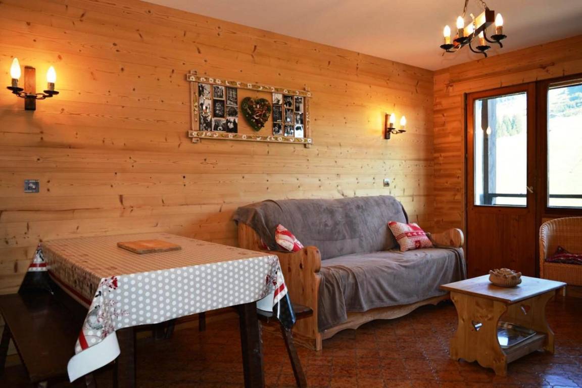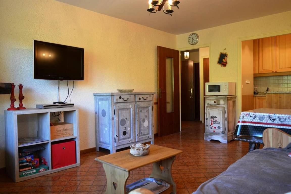 Fläche von ungefähr 45 m². 1te Etage. Orientierung : Süd. Blick skipisten und Berg. Wohnzimmer mit Klappschlafcouch, Kamin (décorative), TV. Schlafzimmer mit Doppelbett, 2 Stockbetten. Kochnische mit Wasserkocher, Kaffeemaschine, Backofen, Toaster, Mikrowellenherd, Glaskeramikkochfelder, Kühlschrank. Badezimmer mit Badewanne, Waschmaschine, Haartrockner. separates WC. Balkon mit Gartentisch und -stühle. Bügelbrett und Bügeleisen. Die oberen Betten sind nicht für Kinder unter 6 Jahren geeignet.
