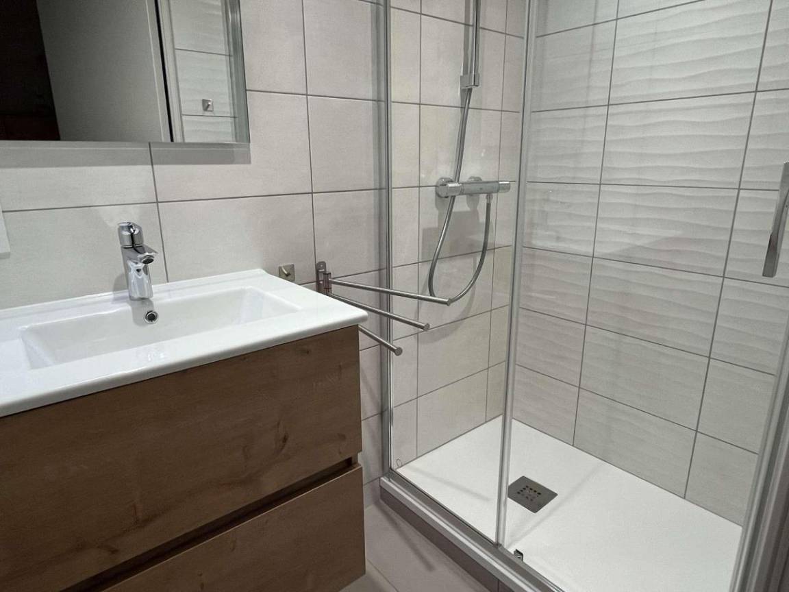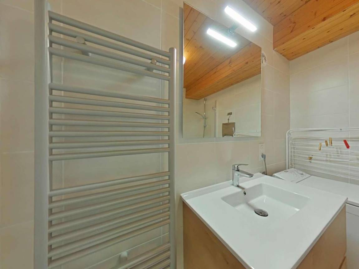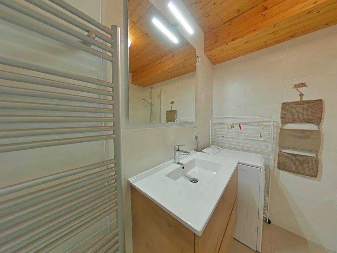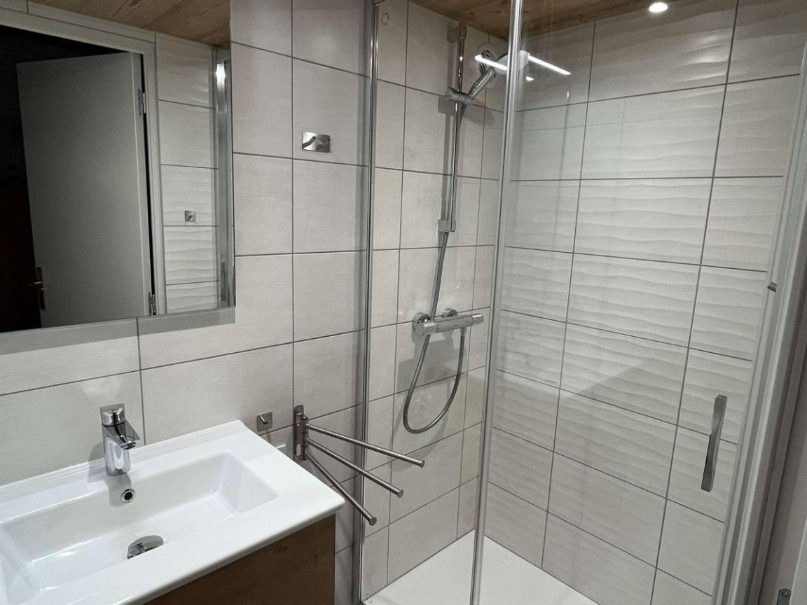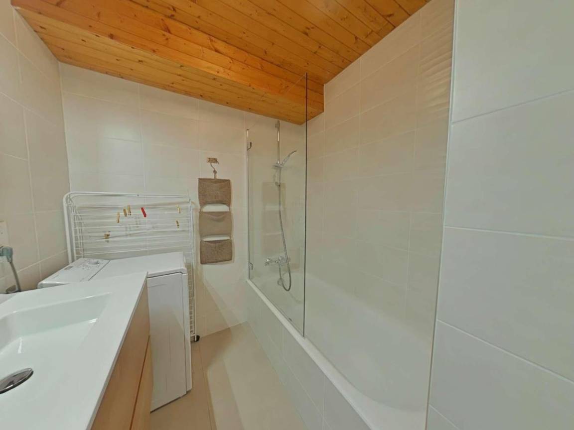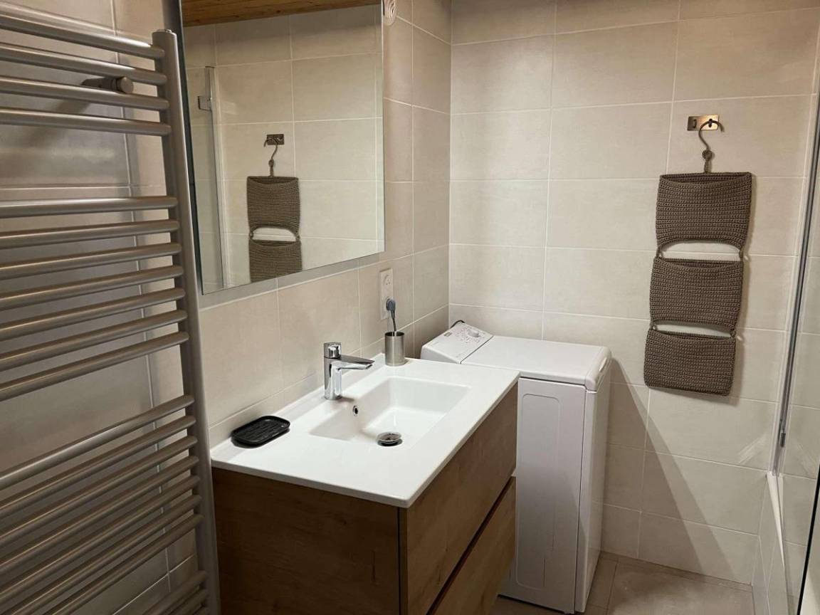 Fläche von ungefähr 72 m². 3te Etage. Orientierung : Süd. Blick berg und Dorf. Wohnzimmer mit Kamin (décorative), Sessel. Schlafzimmer mit Doppelbett (180*200). Schlafzimmer mit Einzelbett, 2 Stockbetten, . Zwischengeschoss mit 2 Einzelbetten. Kochnische mit Wasserkocher, Kaffeemaschine (à filtre), Backofen, Geschirrspülmaschine, Mikrowellenherd, 2 Glaskeramikkochfelder, Kühlschrank. Badezimmer mit Badewanne, Waschmaschine. separates WC. Balkon mit Gartentisch und -stühle. Die oberen Betten sind nicht für Kinder unter 6 Jahren geeignet.