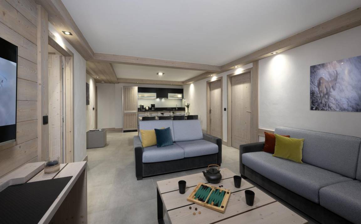 Fläche von ungefähr 75 m². Blick berg. Wohnzimmer mit Klappschlafcouch, Telefon. Schlafzimmer mit Safe, Doppelbett, Waschraum, WC. 2 Schlafzimmer mit 2 Einzelbetten. Kochnische mit Wasserkocher, Kaffeemaschine, , kleiner Backofen mit Mikrowellenfunktion, Toaster, Geschirrspülmaschine, Induktionsherdplatten, Kühlschrank. Badezimmer mit Badewanne oder Dusche, Haartrockner, Handtuchtrockner. separates WC. Balkon mit Gartentisch und -stühle.