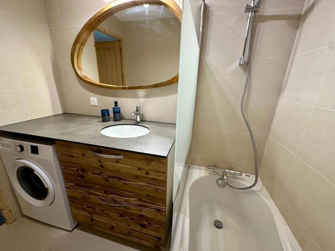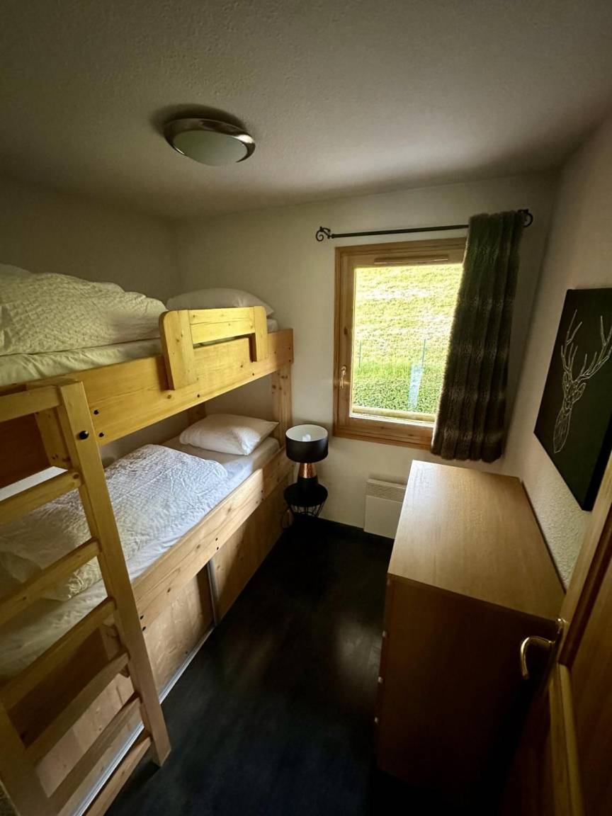 Fläche von ungefähr 64 m². 2te Etage. Orientierung : Süd-West. Wohnzimmer mit Sofa. Schlafzimmer mit Doppelbett (160). Schlafzimmer mit 2 Einzelbetten. offener Schlafbereich mit 2 Stockbetten. Küche mit Fonduegerät, Raclettegerät, Schnellkochtopf, 2 Kaffeemaschinen (filtres & Senseo), Gefrierschrank, Backofen, Toaster, Geschirrspülmaschine, Mikrowellenherd, 3 Herdplatten, Kühlschrank. Badezimmer mit Haartrockner. Waschräume. separates WC. Balkon. Waschmaschine. Die oberen Betten sind nicht für Kinder unter 6 Jahren geeignet.