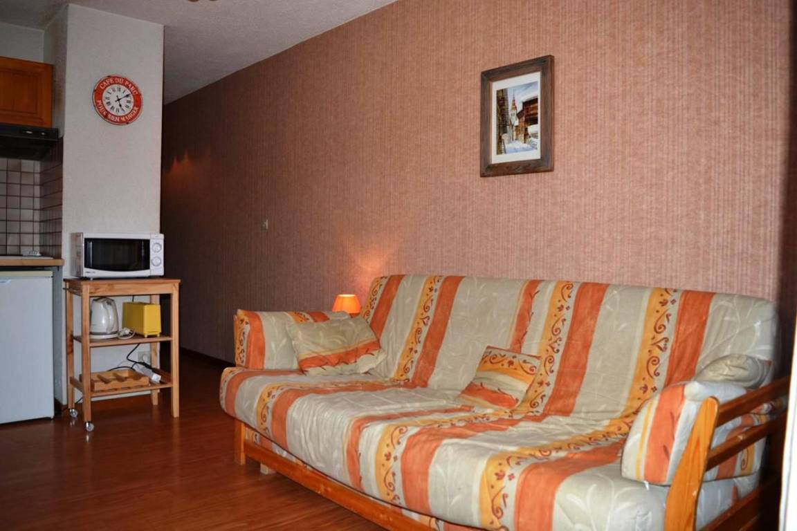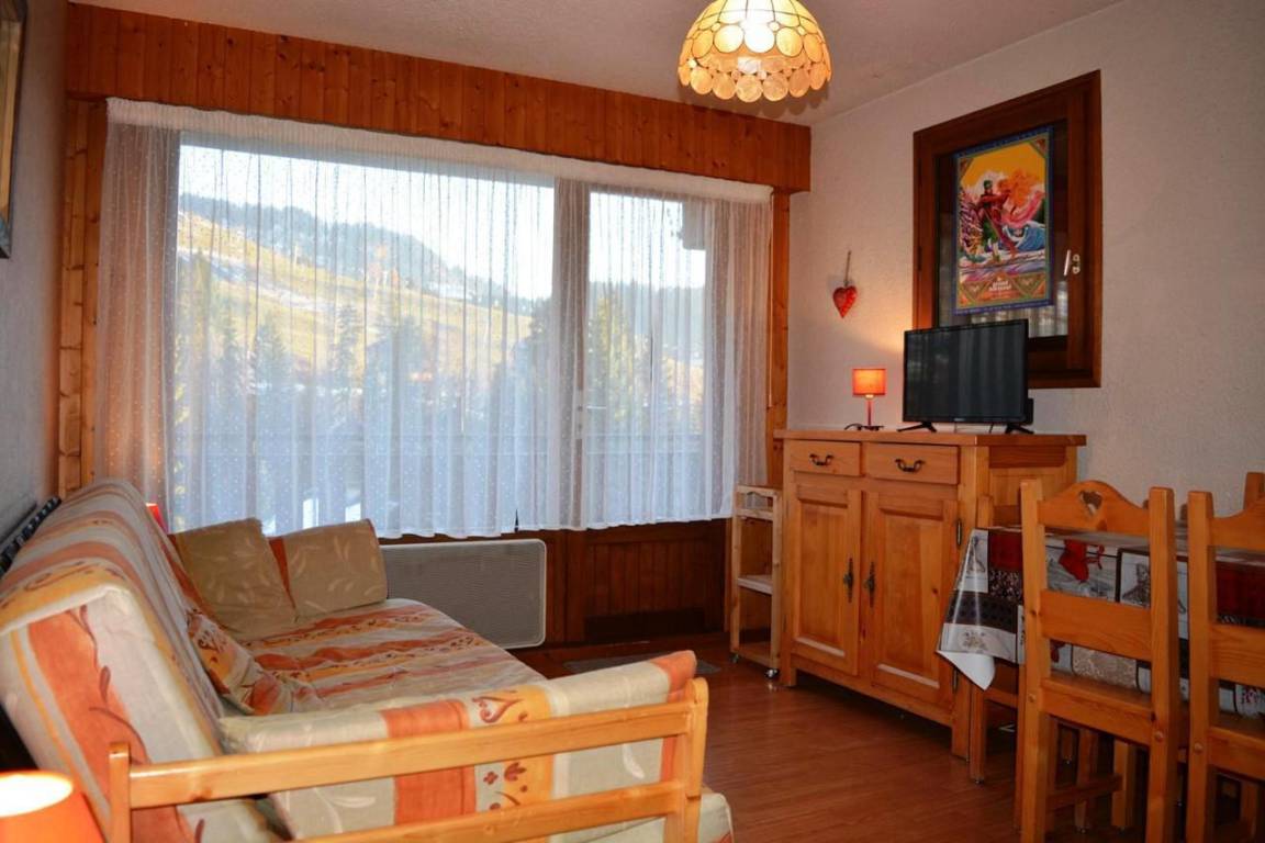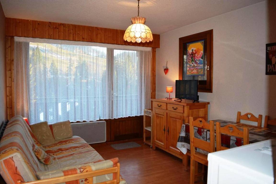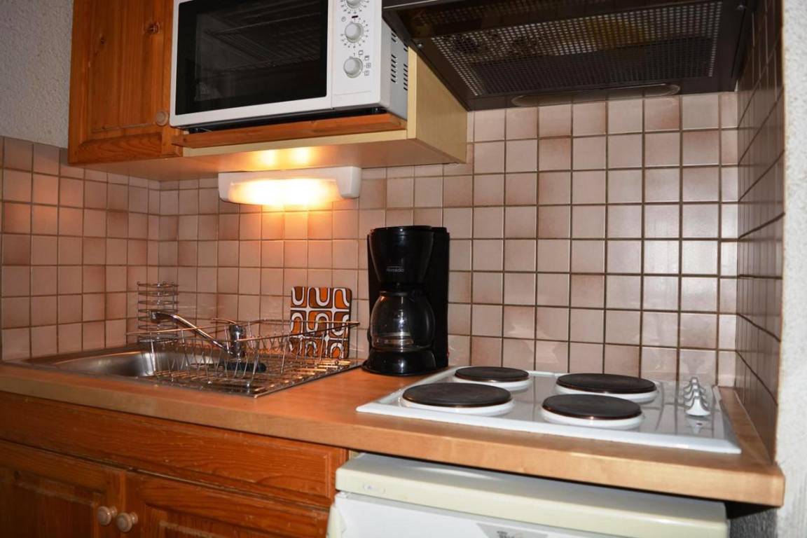 Fläche von ungefähr 27 m². Etage -2. Orientierung : Süd. Blick skipisten. Wohnzimmer mit Klappschlafcouch, TV. Alkoven mit 2 Stockbetten. Kochnische mit Fonduegerät, Wasserkocher, Kaffeemaschine (filtres), Backofen, Toaster, Mikrowellenherd, 2 Glaskeramikkochfelder, Kühlschrank. Badezimmer mit Haartrockner, Handtuchtrockner, WC. Balkon. Die oberen Betten sind nicht für Kinder unter 6 Jahren geeignet.