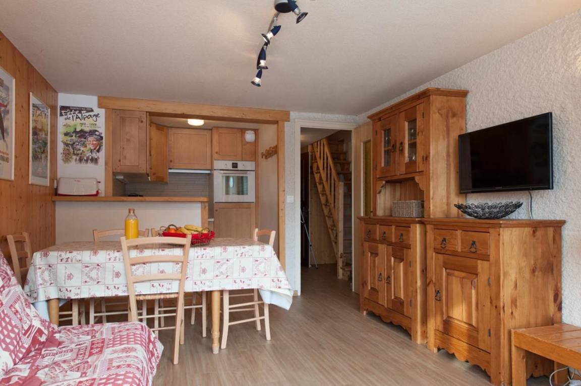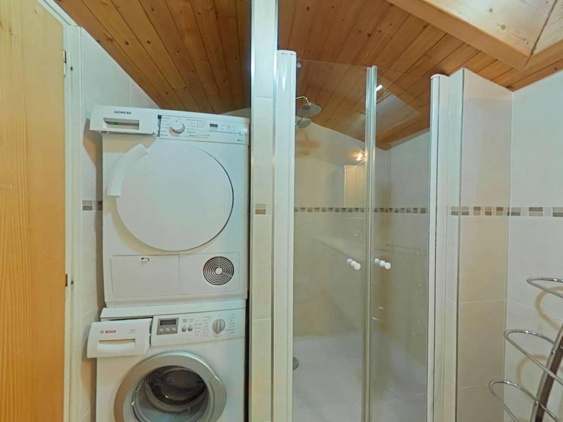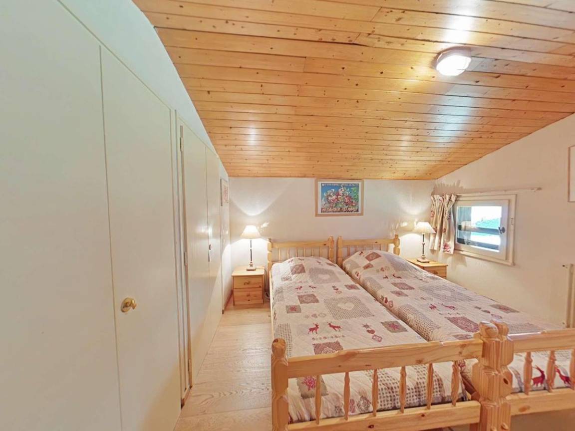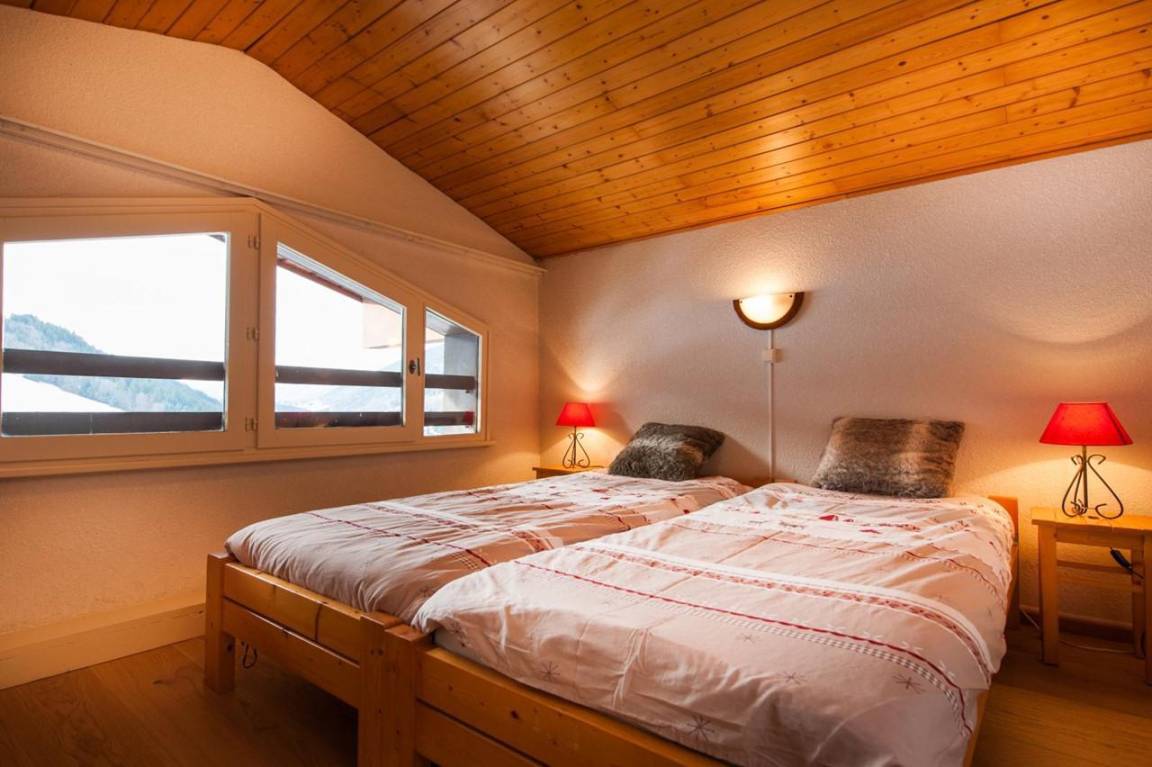 Fläche von ungefähr 63 m². 3te Etage. Orientierung : Süd. Wohnzimmer ab 15.00 m² mit . Schlafzimmer ab 9.00 m² mit 2 Einzelbetten (90x190). Schlafzimmer ab 12.00 m² mit 2 Einzelbetten (90x190). Zwischengeschoss mit 2 Stockbetten. Kochnische mit Fonduegerät, Raclettegerät, 2 Kaffeemaschinen (filtres ), Backofen, Toaster, Geschirrspülmaschine, Mikrowellenherd, 2 Glaskeramikkochfelder, Kühlschrank. Badezimmer mit Dusche, Waschmaschine, Wäschetrockner, WC. separates WC. Balkon. Die oberen Betten sind nicht für Kinder unter 6 Jahren geeignet.