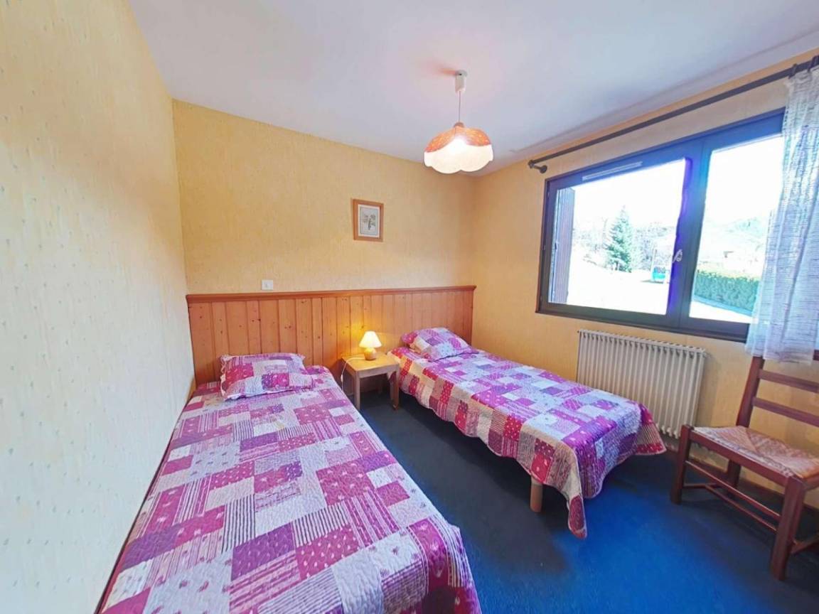 Fläche von ungefähr 53 m². 1te Etage. Orientierung : Nord, Süd. Blick berg. Wohnzimmer ab 18.84 m² mit Klappschlafcouch, Kamin (décorative). Schlafzimmer ab 9.48 m² mit 2 Einzelbetten (90*190). Schlafzimmer ab 8.64 m² mit Doppelbett (140*190). Kochnische mit Wasserkocher, Kaffeemaschine (filtres), Backofen, Mikrowellenherd, 2 Glaskeramikkochfelder, Kühl-Gefrier-Kombination. Badezimmer mit Badewanne. separates WC. Balkon.