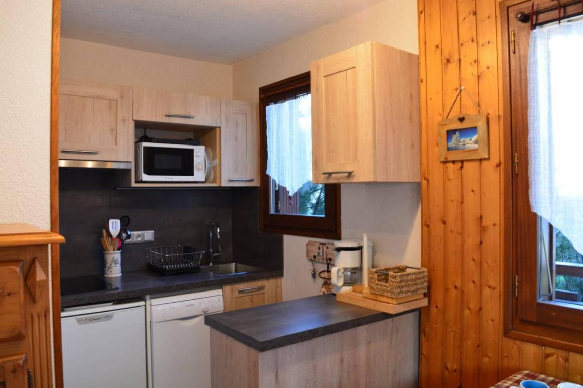 Fläche von ungefähr 26 m². Erdgeschoss. Orientierung : Süd-Ost. Wohnzimmer ab 12.76 m² mit Klappschlafcouch (140*190). offener Schlafbereich ab 4.24 m² mit 2 Stockbetten (80*190). Kochnische mit Fonduegerät, Raclettegerät, Wasserkocher, 2 Kaffeemaschinen (filtres & Senseo), Backofen, Toaster, Geschirrspülmaschine, Mikrowellenherd, 2 Glaskeramikkochfelder, Kühlschrank. Waschräume mit Dusche. separates WC. Balkon mit Gartentisch und -stühle. Die oberen Betten sind nicht für Kinder unter 6 Jahren geeignet.