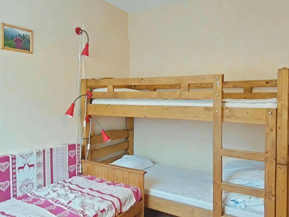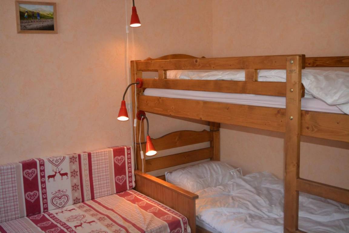 Fläche von ungefähr 58 m². 2te Etage. Blick berg (Chaine des Aravis). Wohnzimmer mit Klappschlafcouch (160). Schlafzimmer mit Doppelbett (180*190). Schlafzimmer mit 2 Stockbetten. Kochnische mit Raclettegerät, Wasserkocher, Kaffeemaschine (filtre), kleiner Backofen mit Mikrowellenfunktion, Toaster, Geschirrspülmaschine, Herdplatten, Kühlschrank. Badezimmer mit Badewanne. separates WC. Die oberen Betten sind nicht für Kinder unter 6 Jahren geeignet.