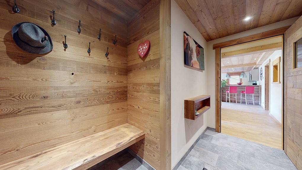 Haus: : Historisches Chalet mit 2 großzügigen Komfort-Ferienwohnungen: Sauna / SPA-Bereich, Kaminofen, Panorama-Terrasse. Im Parterre: ansprechend renovierte 3-Zimmer-Wohnung in einer gelungenen Mischung aus traditionell-rustikalem und modernem Stil. Nichtraucherwohnung. Rustikal-wohnliches Ambiente, Holzvertäfelung in allen Zimmern. Moderne, geschmackvolle Einrichtung. Kostenloser Internetzugang über W-Lan. Service: alle Betten sind bei Ankunft bezogen. Handtücher, Badeteppiche vorhanden. Badezimmer mit Handtuchtrockner, Fön. Zentralheizung. Terrasse und Balkon mit Sitzmöbeln, Liegen, elektrischem Grill und herrlichem Blick auf die Skipisten und Bergkulisse. 2 Pkw-Stellplätze pro Wohnung