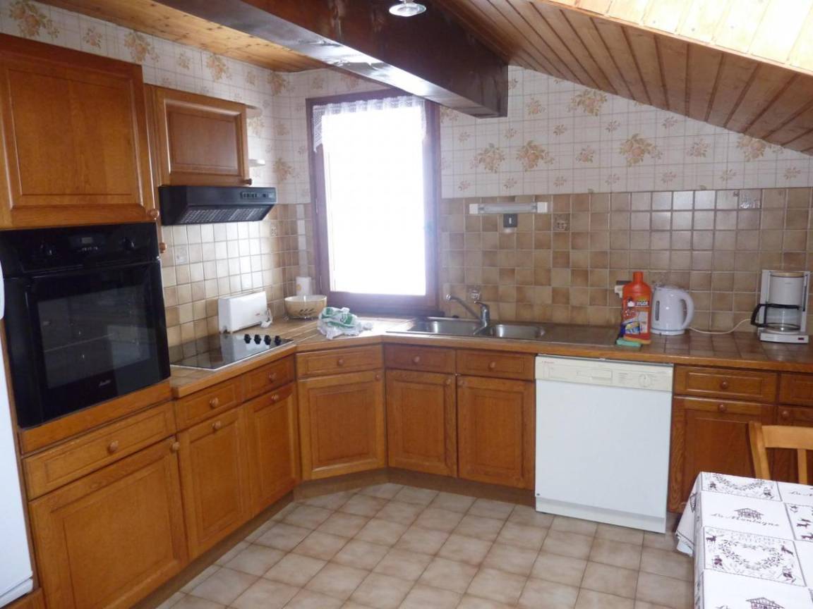 Fläche von ungefähr 93 m². 2te Etage. Orientierung : Nord-West. Blick berg und Dorf. Wohnzimmer ab 32.00 m² mit Sofa, Kamin. Mansardenzimmer ab 16.00 m² mit Doppelbett, 2 Einzelbetten. Mansardenzimmer ab 12.00 m² mit Doppelbett (140). Küche ab 12.30 m² mit Fonduegerät, Raclettegerät, Gefrierschrank, Backofen, Geschirrspülmaschine, Mikrowellenherd, Glaskeramikkochfelder, Kühlschrank. Badezimmer mit Badewanne, Handtuchtrockner. separates WC. Balkon.