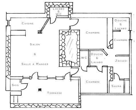 Fläche von ungefähr 92 m². Erdgeschoss. Orientierung : Süd. Wohnzimmer. 2 Schlafzimmer mit Doppelbett. Schlafzimmer mit 2 Stockbetten. Kochnische mit Fonduegerät, Raclettegerät, Wasserkocher, Kaffeemaschine, Backofen, Toaster, Geschirrspülmaschine, Mikrowellenherd, Induktionsherdplatten, Kühl-Gefrier-Kombination. Badezimmer mit Badewanne mit Whirlpoolfunktion, Waschmaschine, Handtuchtrockner. 2 Waschräume mit Dusche. 2 separate WCs. Sauna. Die oberen Betten sind nicht für Kinder unter 6 Jahren geeignet.