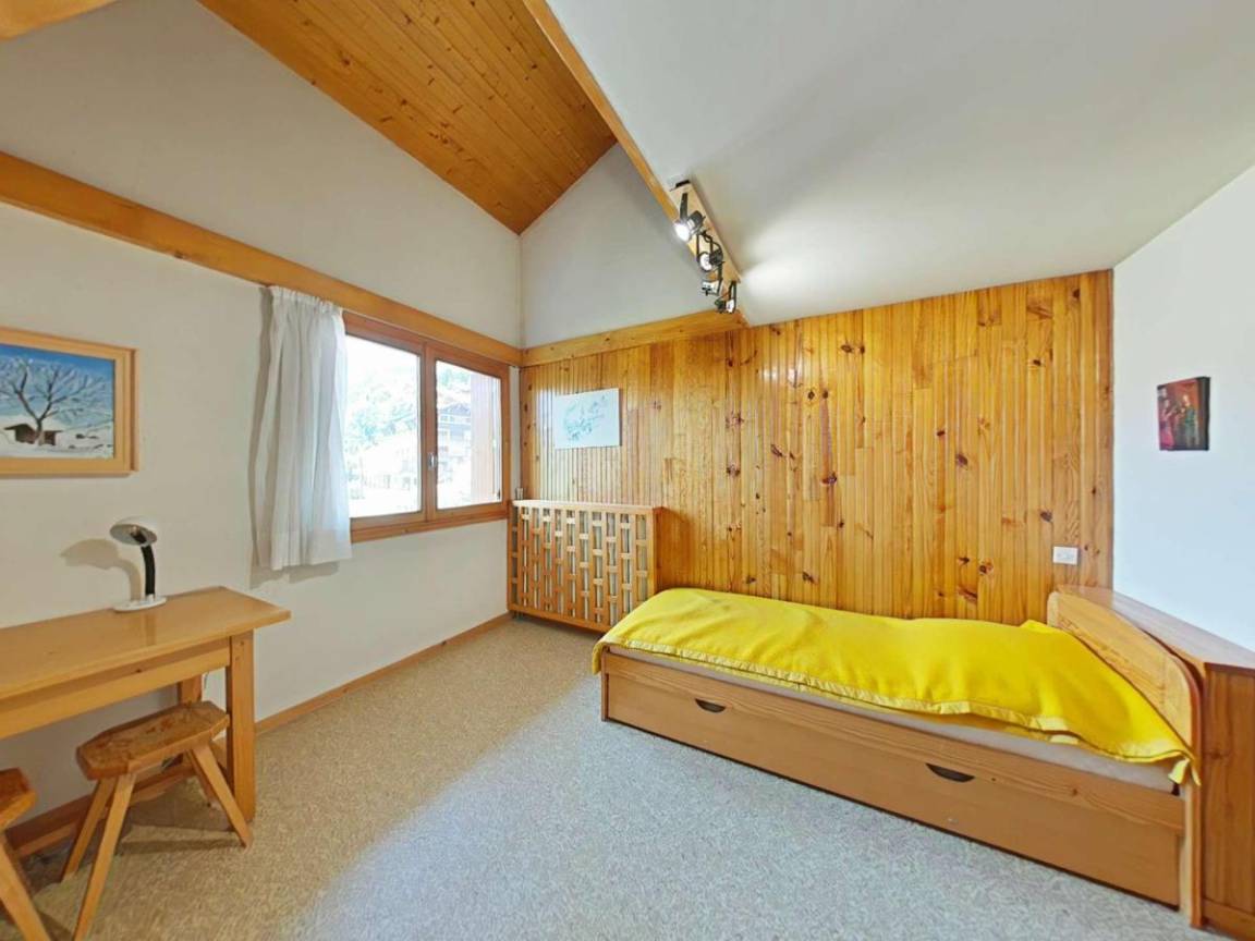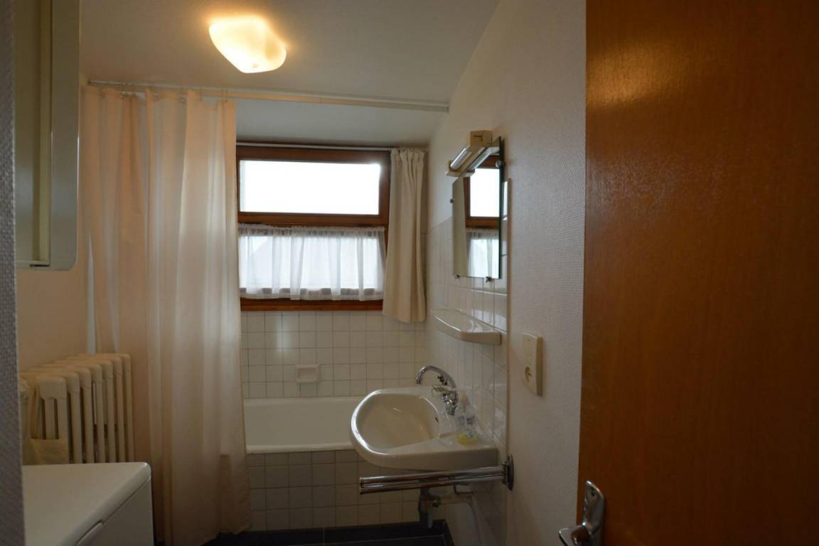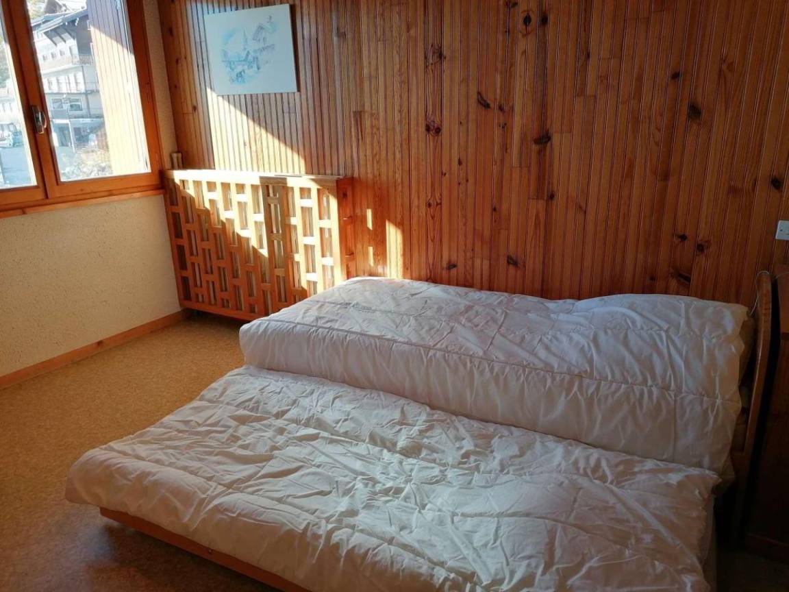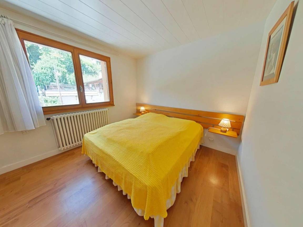 Fläche von ungefähr 69 m². Einige als Maisonette. 1te Etage. Orientierung : Nord, Süd-West. Wohnzimmer mit TV. Schlafzimmer mit Gefrierschrank, 2 zwei Einzelbetten (80). Schlafzimmer mit 2 Ausziehbetten. Zwischengeschoss mit Doppelbett (140). Kochnische mit Fonduegerät, Raclettegerät, Wasserkocher, Kaffeemaschine (nespresso), Backofen, Toaster, Geschirrspülmaschine, Induktionsherdplatten, Kühlschrank. Badezimmer mit Badewanne, Waschmaschine, Haartrockner. separates WC. Balkon mit Gartentisch und -stühle. Bügeleisen.