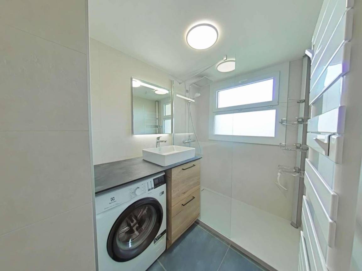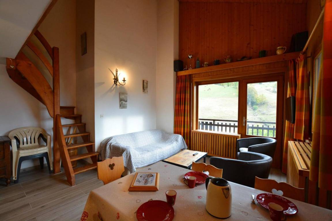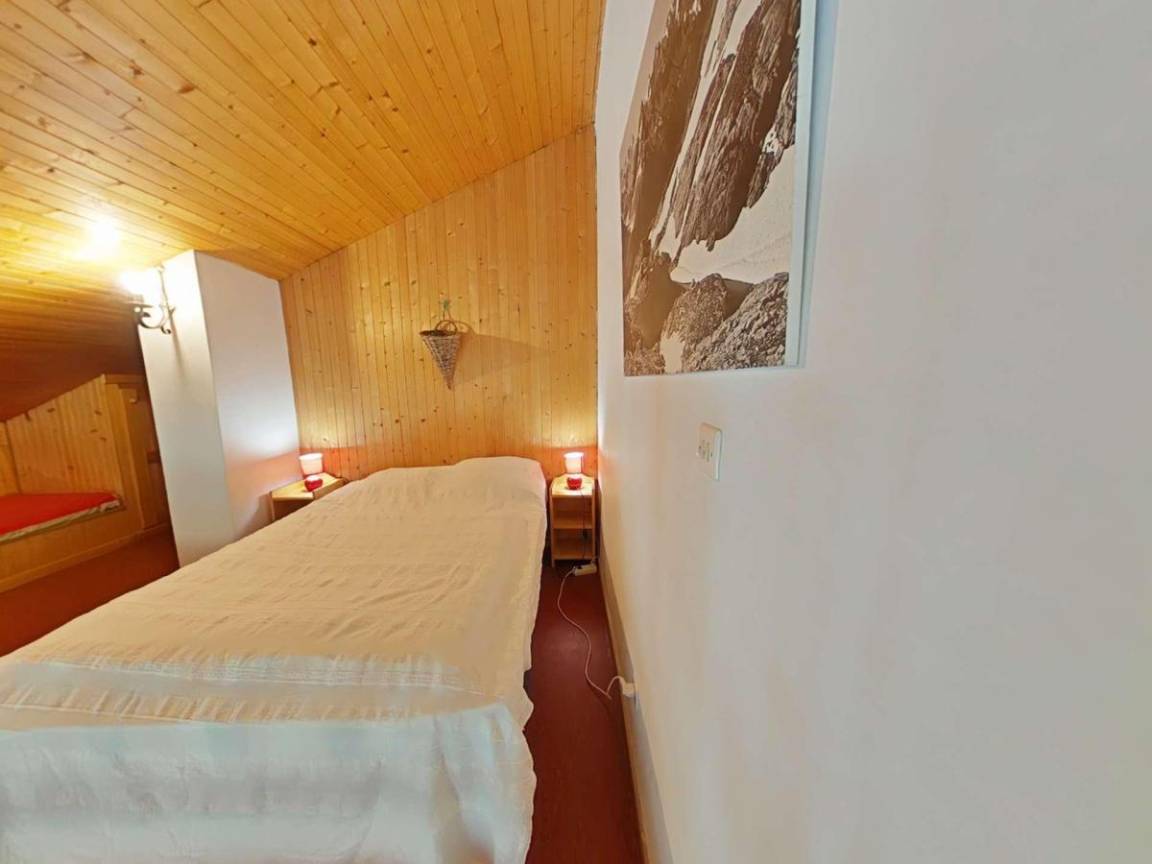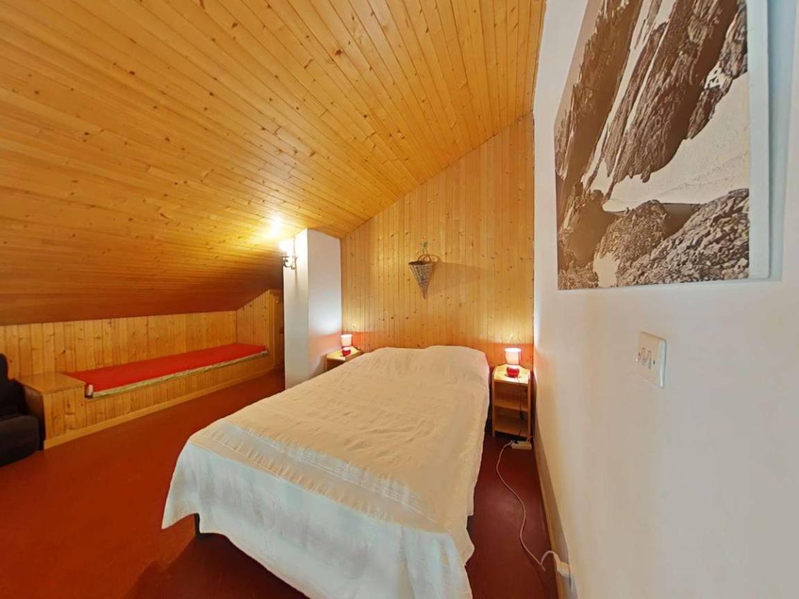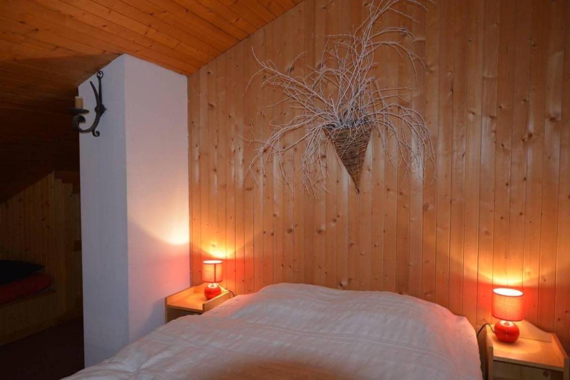 Fläche von ungefähr 69 m². Einige als Maisonette. 1te Etage. Orientierung : Nord, Süd-West. Wohnzimmer mit TV. Schlafzimmer mit Gefrierschrank, 2 zwei Einzelbetten (80). Schlafzimmer mit 2 Ausziehbetten. Zwischengeschoss mit Doppelbett (140). Kochnische mit Fonduegerät, Raclettegerät, Wasserkocher, Kaffeemaschine (nespresso), Backofen, Toaster, Geschirrspülmaschine, Induktionsherdplatten, Kühlschrank. Badezimmer mit Badewanne, Waschmaschine, Haartrockner. separates WC. Balkon mit Gartentisch und -stühle. Bügeleisen.