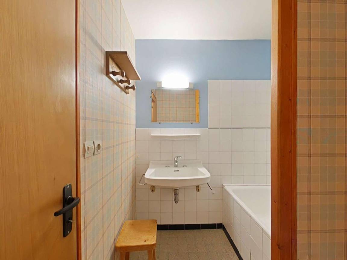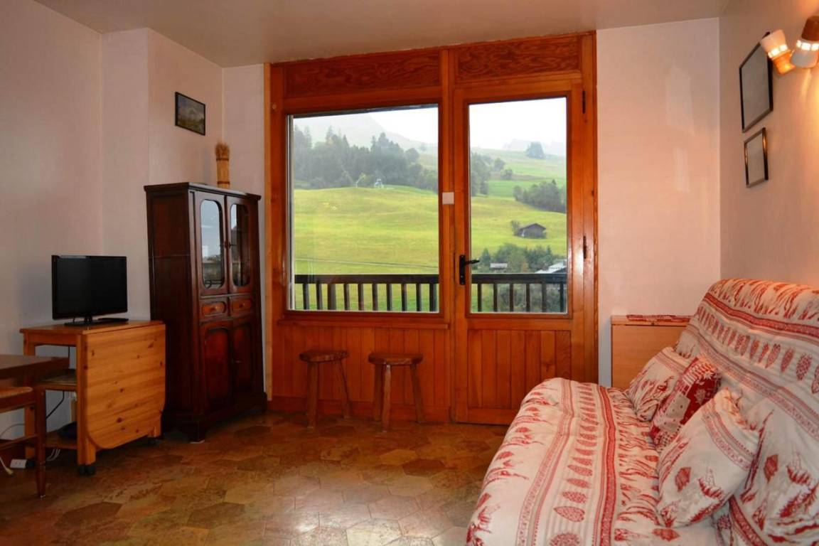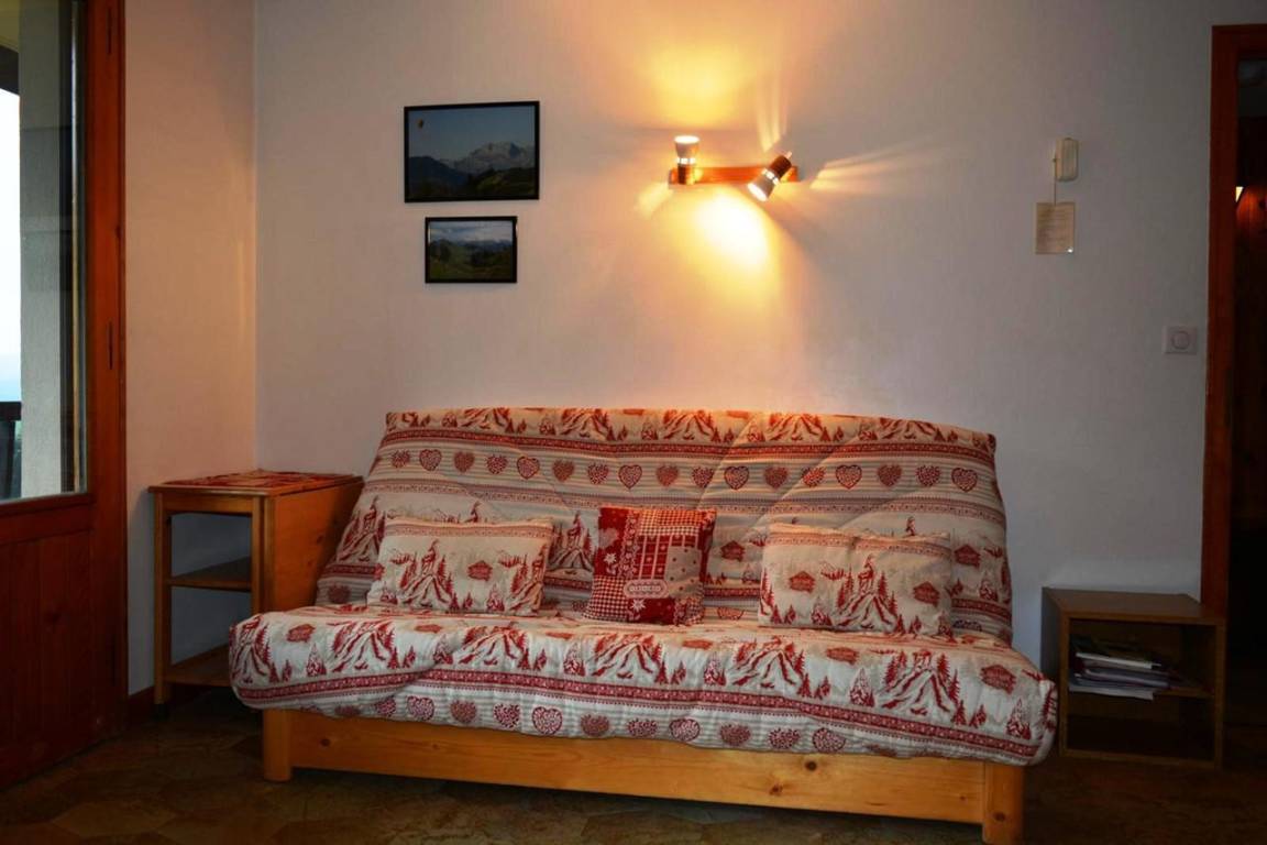 Fläche von ungefähr 31 m². 2te Etage. Orientierung : West. Blick skipisten. Wohnzimmer mit Klappschlafcouch, TV. Schlafzimmer mit Doppelbett, Stockbett (1 place). Kochnische mit Fonduegerät, Raclettegerät, Wasserkocher, Kaffeemaschine (filtre), kleiner Backofen mit Mikrowellenfunktion, Toaster, Geschirrspülmaschine, elektronische Herdplatten, Kühl-Gefrier-Kombination. Badezimmer mit Badewanne, WC. Balkon mit Gartentisch und -stühle. Staubsauger. Die oberen Betten sind nicht für Kinder unter 6 Jahren geeignet.