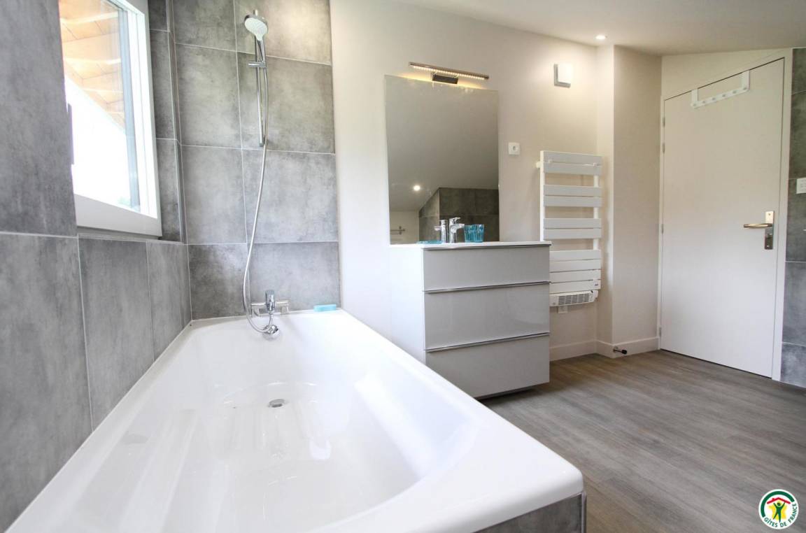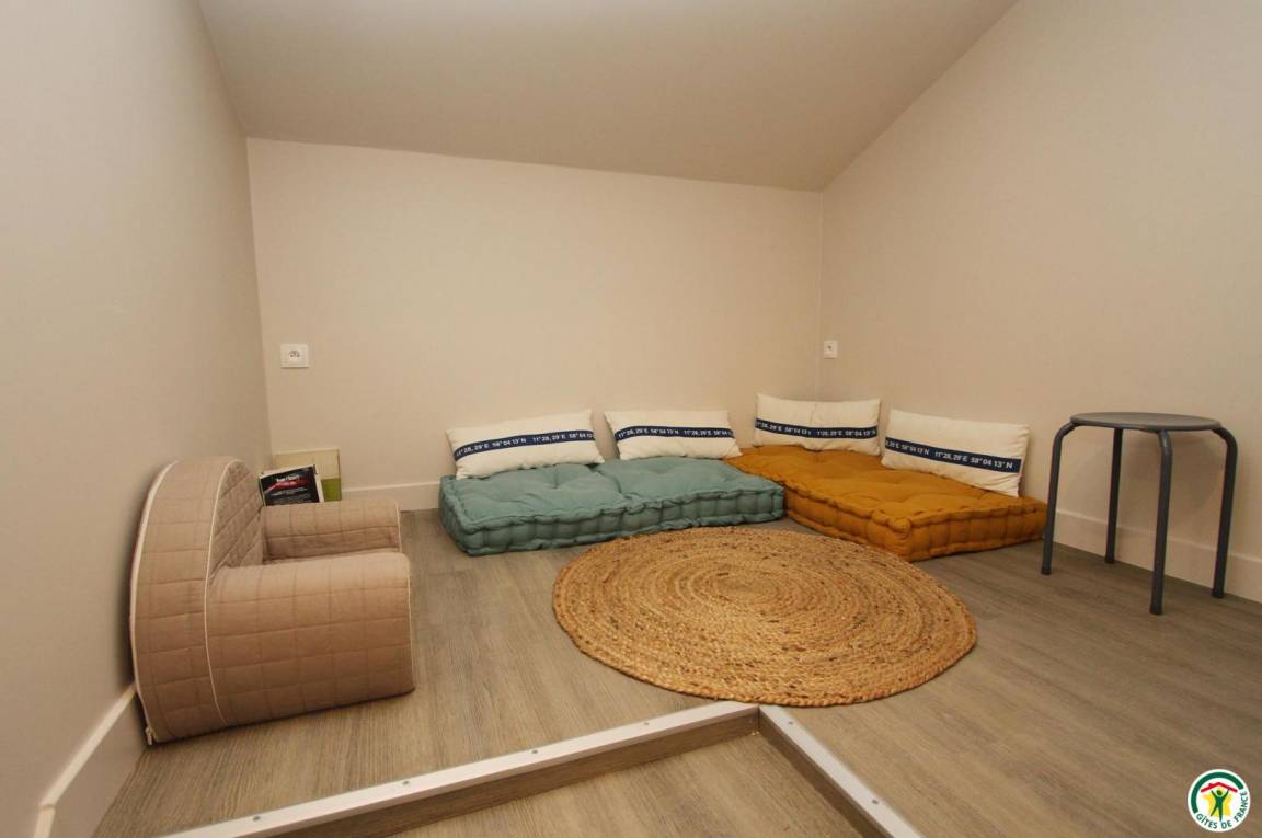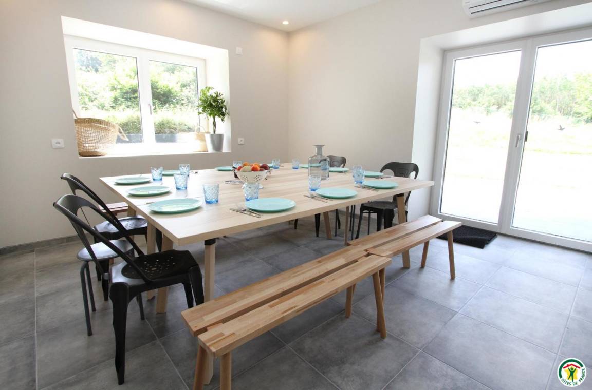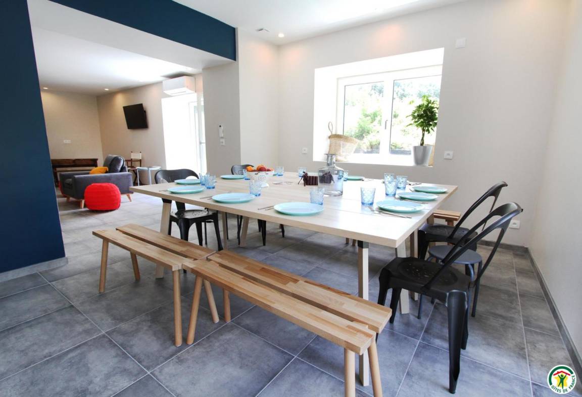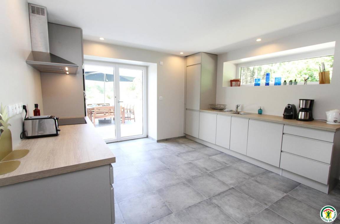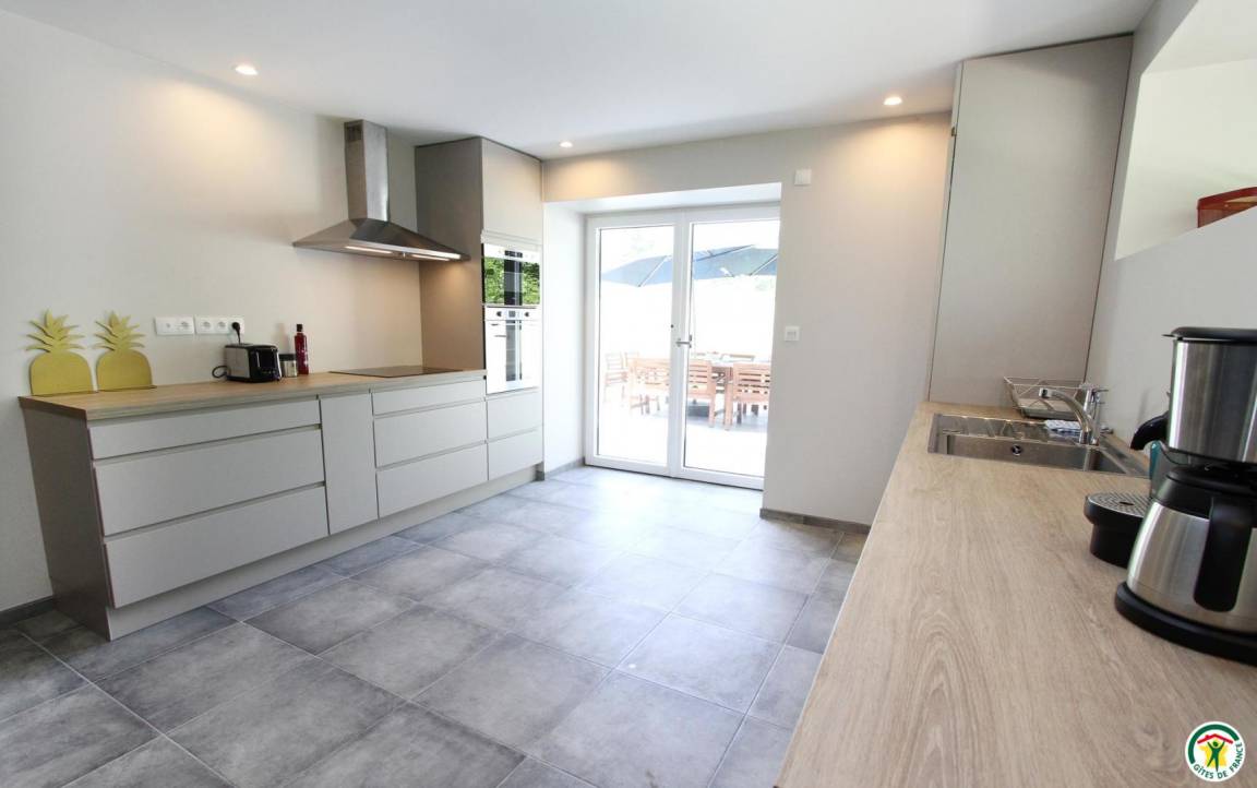 „Le gîte est spacieux pour 9 adultes et 3 enfants en bas âge. Il est bien équipé. Le four est high tech et nous avons eu quelques difficultés à le faire fonctionner. Le propriétaire nous a répondu rapidement et envoyé la notice. Nous avons passé un bon séjour !“