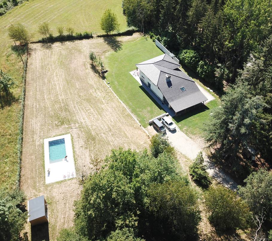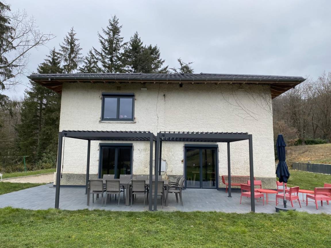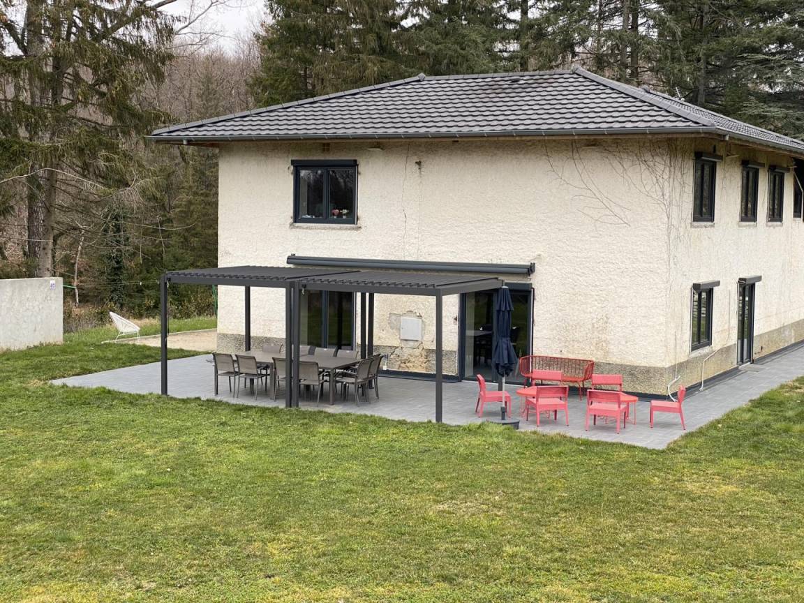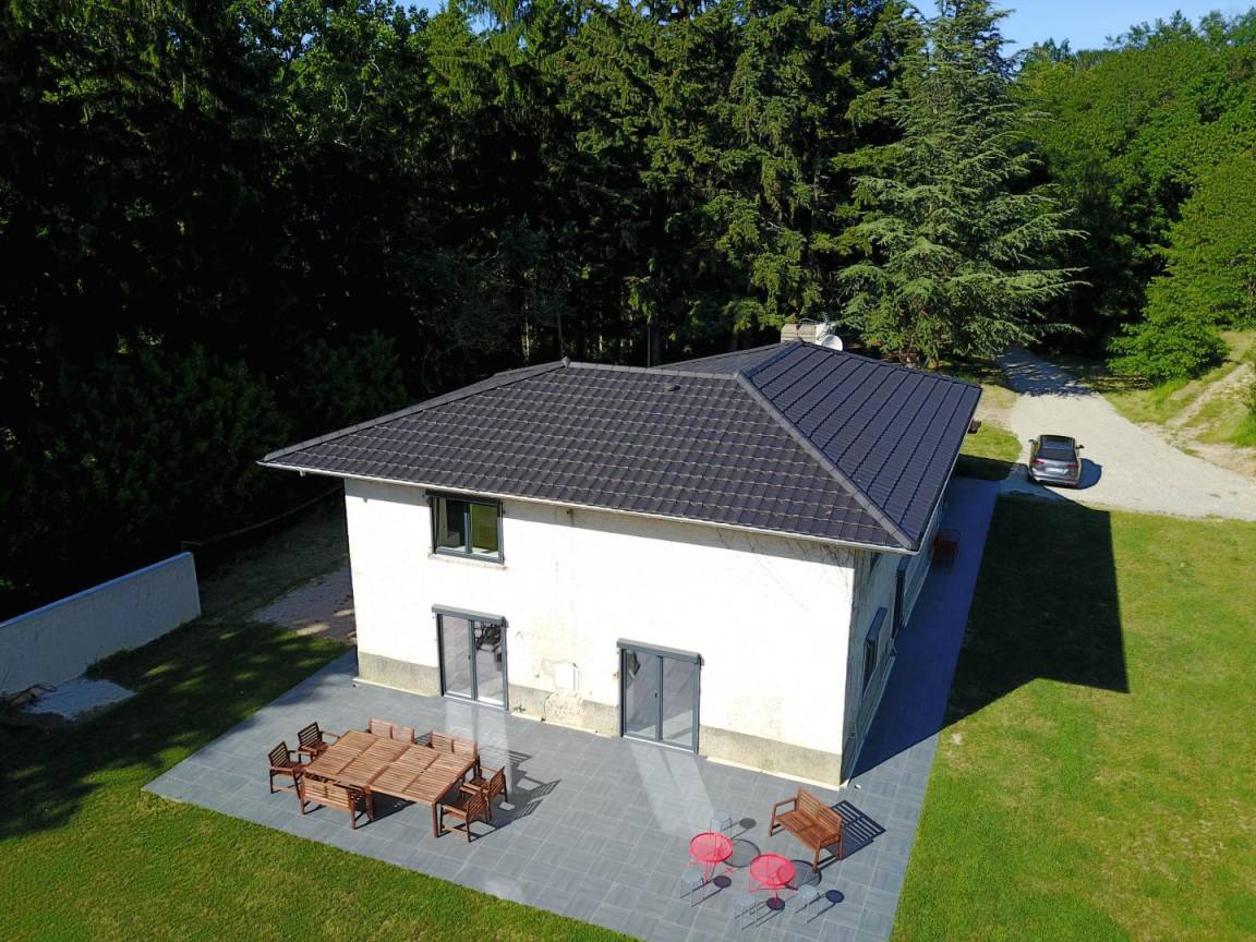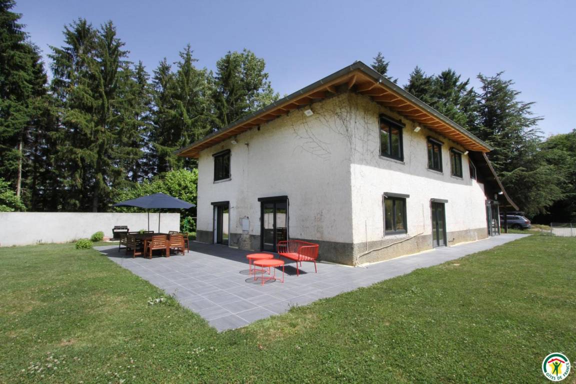 In einer geschützten grünen Umgebung und auf einem umzäunten Grundstück von mehreren Hektar liegt dieses fast 200 m² große Haus mit den Merkmalen eines BBC-Hauses nur eine Stunde von Lyon entfernt. Im Erdgeschoss befinden sich ein schöner heller Wohnraum, ein Esszimmer, ein Wohnzimmer mit Kamin, eine sehr gut ausgestattete Küche, ein Badezimmer sowie 2 separate Toiletten. Nachtseitig, im Obergeschoss sechs Schlafzimmer, zwei davon mit eigenem Bad, jeweils mit 2 Einzelbetten oder 1 Doppelbett (2x80 oder 1x160), ein Badezimmer mit Badewanne, eine Toilette. Im Nebengebäude im Erdgeschoss, Waschküche, ein großes Zimmer mit Sofas für Kinder oder Jugendliche, zahlreiche Parkplätze. Für Pétanque ausgestattetes Gelände (Pétanque- und Molki-Spiel verfügbar). Nichtraucherunterkunft. Schwimmbad 7 x 4 m (geöffnet vom 15. Mai bis 15. September).