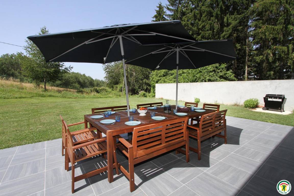 „Très bon accueil avec un livret d'instructions très détaillé. Gîte est très bien équipé, notamment la cuisine. Chambres confortables. Belle terrasse, spacieuse. Possibilité de se balader dans le terrain, présence d'un étang. Je recommande pour les groupes de 10/12 personnes !“