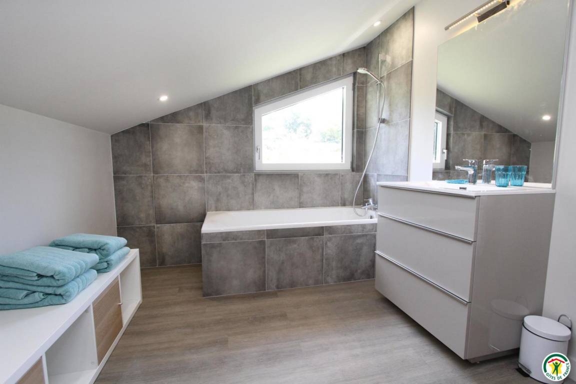 „Nous avons d'abord été surpris par le côté 'non fini ' de ce gîte: Les finitions extérieures autour des fenêtres ne sont pas faites, les façades incomplètes, un escalier intérieur en bastaing de bois brut de taché des précédents travaux. Nous signalons que l'entrée principale se fait par l'arrière de la maison, et nécessite de passer par l'étage, avec beaucoup de changements de niveaux, pour atteindre les pièces principales. Attention donc aux personnes à mobilité réduite. Coté propreté, nous avons du nettoyer notamment la cuisine (frigo, crédence...), ce qui n'est pas plaisant lorsqu'on arrive après une journée de route !“