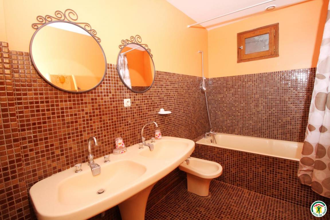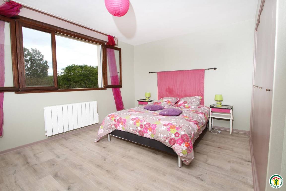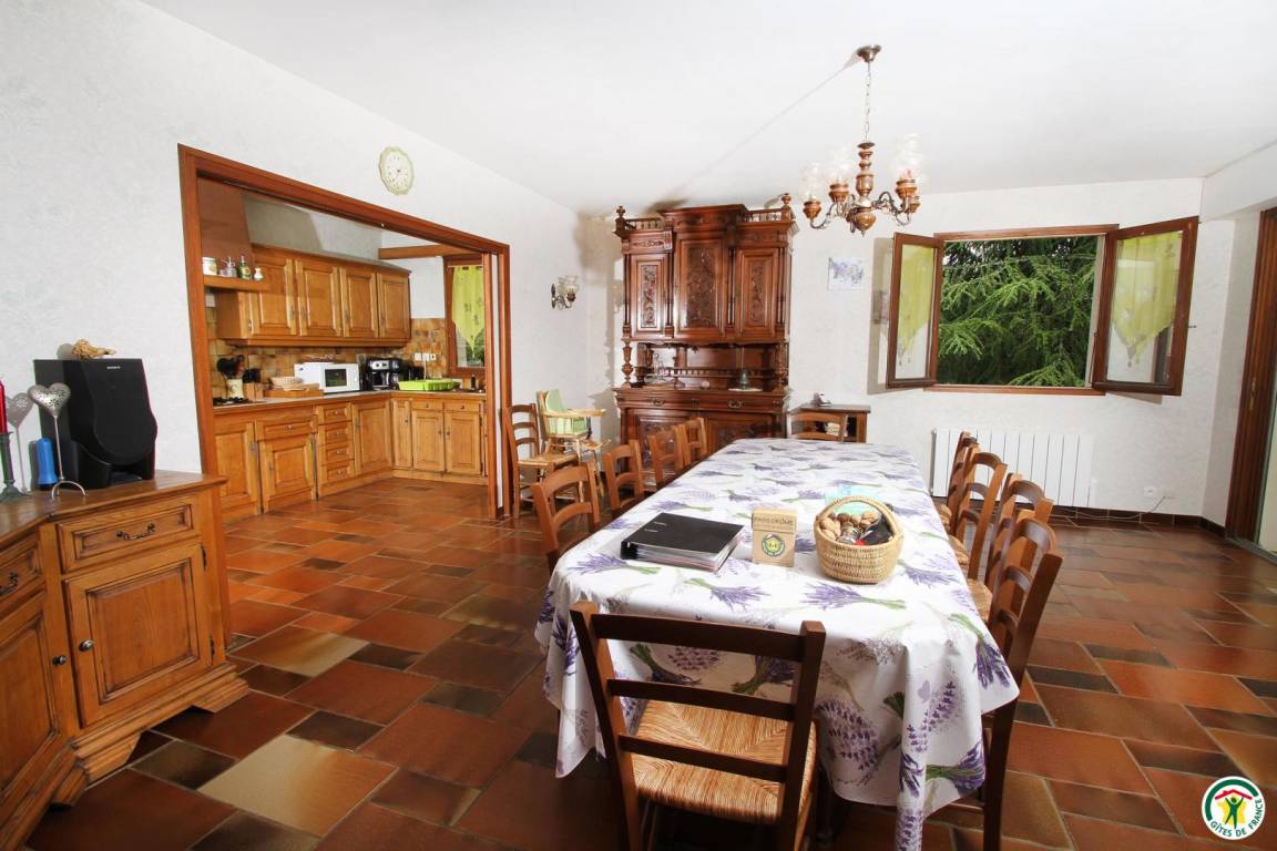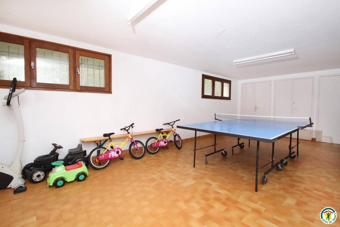 Erdgeschoss: Wäschekammer mit Waschmaschine, Wäscheständer, Tiefkühlschrank, Bügeleisen. Spieleraum mit Plancha-Grill, Schlägern, Tischtennisplatte, Liegestühlen, Kinderfahrrädern, doppeltem Kinderwagen, Kinder-Traktor. 1. Stock: Küche, Esszimmer (Holzofen), Wohnzimmer, Veranda, 1 Schlafzimmer (1 Bett 160 cm), ein Babyzimmer, Badezimmer (Dusche und Badewanne), WC. 2. Stock: 4 Schlafzimmer (1 Bett 160 cm)(2 Betten 90 cm)(2 Betten 90 cm)(2 Betten 90 cm), Bad mit Dusche, WC. Großer Außenbereich (3 000 m²) mit Nussbäumen. Kinder-Wippe. Zusätzliche Person: 70 €/Woche.