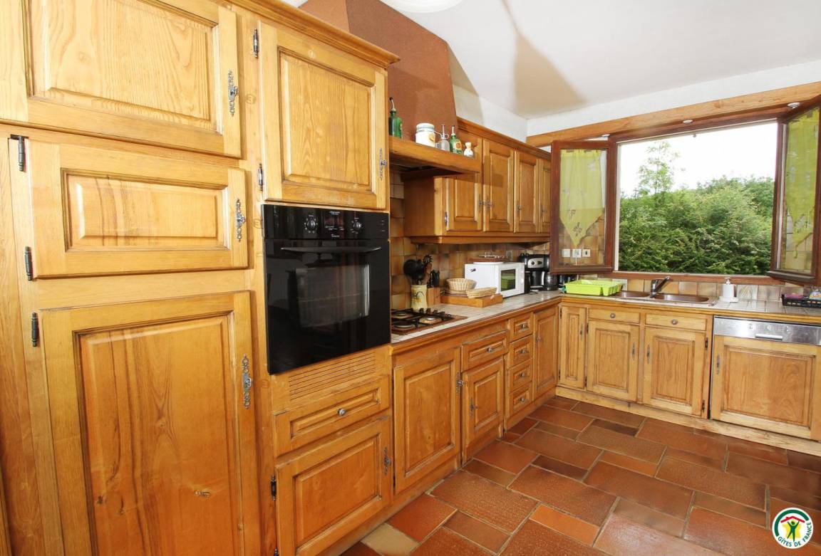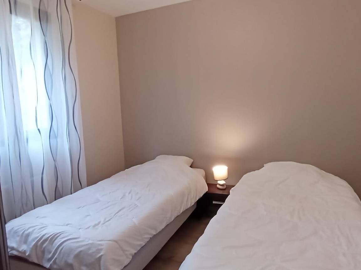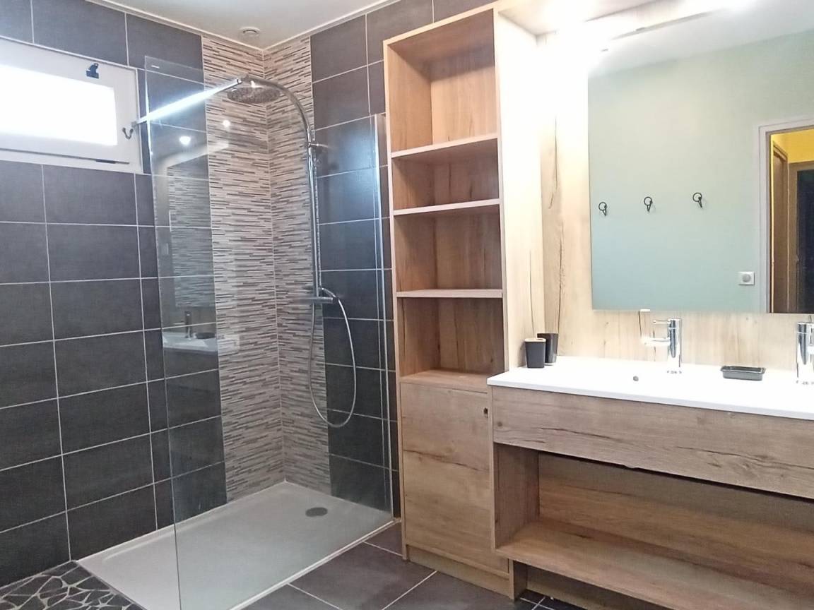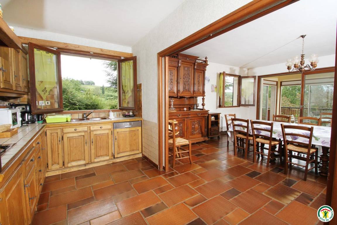 Erdgeschoss: Wäschekammer mit Waschmaschine, Wäscheständer, Tiefkühlschrank, Bügeleisen. Spieleraum mit Plancha-Grill, Schlägern, Tischtennisplatte, Liegestühlen, Kinderfahrrädern, doppeltem Kinderwagen, Kinder-Traktor. 1. Stock: Küche, Esszimmer (Holzofen), Wohnzimmer, Veranda, 1 Schlafzimmer (1 Bett 160 cm), ein Babyzimmer, Badezimmer (Dusche und Badewanne), WC. 2. Stock: 4 Schlafzimmer (1 Bett 160 cm)(2 Betten 90 cm)(2 Betten 90 cm)(2 Betten 90 cm), Bad mit Dusche, WC. Großer Außenbereich (3 000 m²) mit Nussbäumen. Kinder-Wippe. Zusätzliche Person: 70 €/Woche.