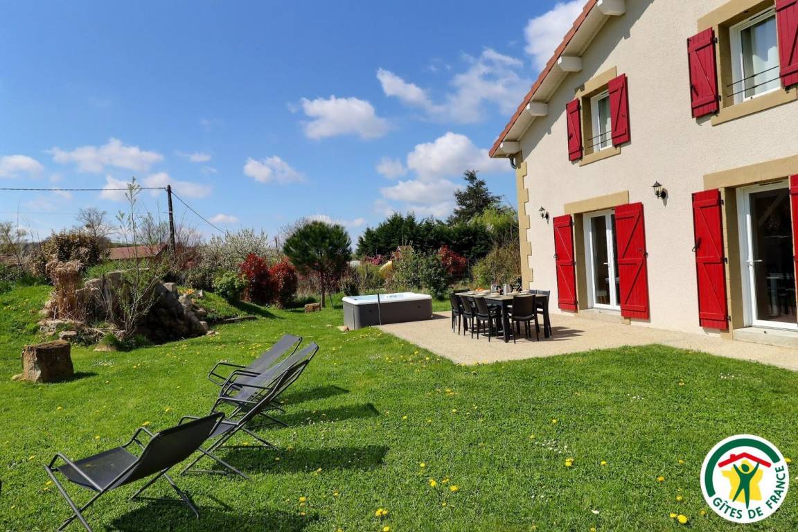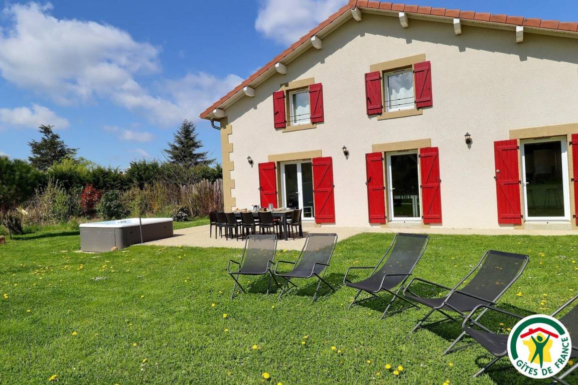 „Gîtes très bien situé géographiquement Avec de très belles prestations notamment le jacuzzi et le saunaEspace de vie très spacieux et très agréable Équipement parfait Un havre de paix avec un très bel espace extérieur.“