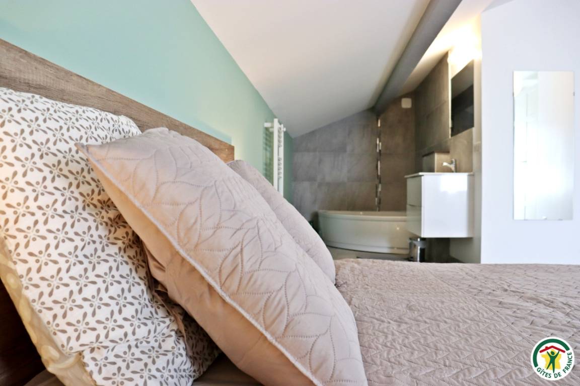 „Lieu ressourçant ! Tranquille assuré !Le petit chemin pour aller à la cascade est un plus !Le jacuzzi également Nous avons passé une très bonne journée et soirée au gîte de la cascade !Lieu tout neuf, propre et spacieux !“