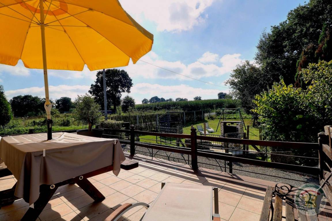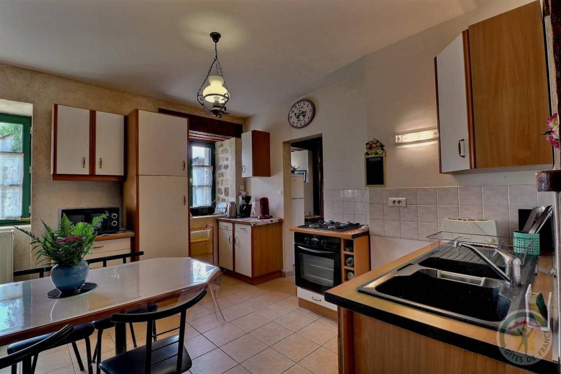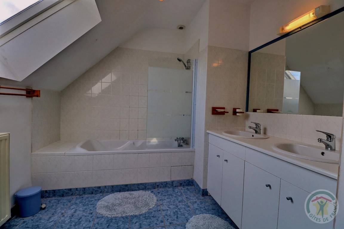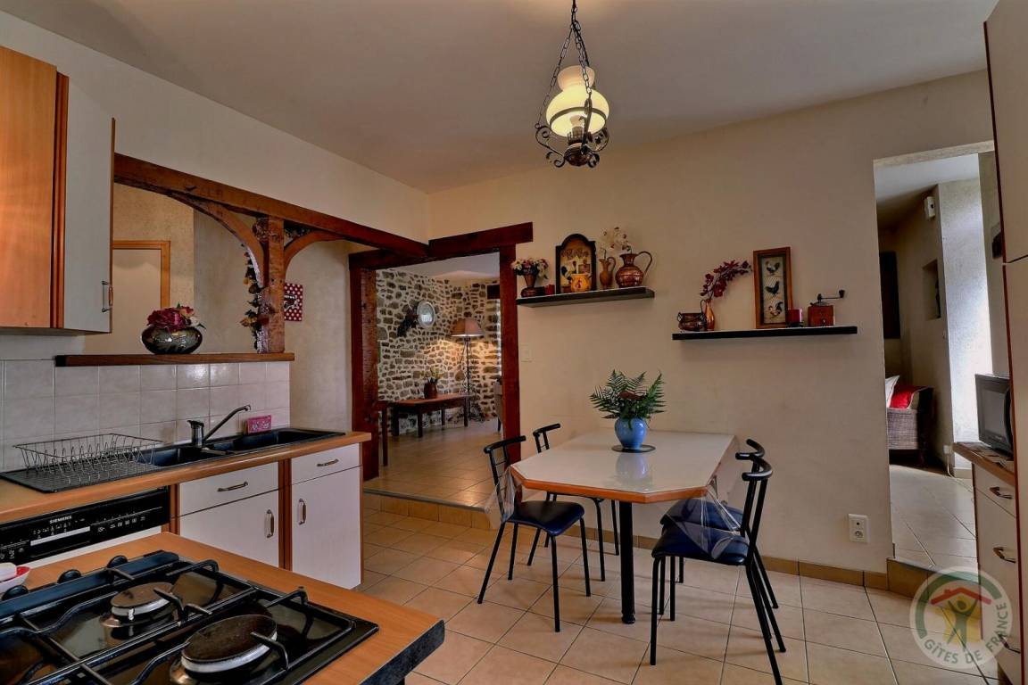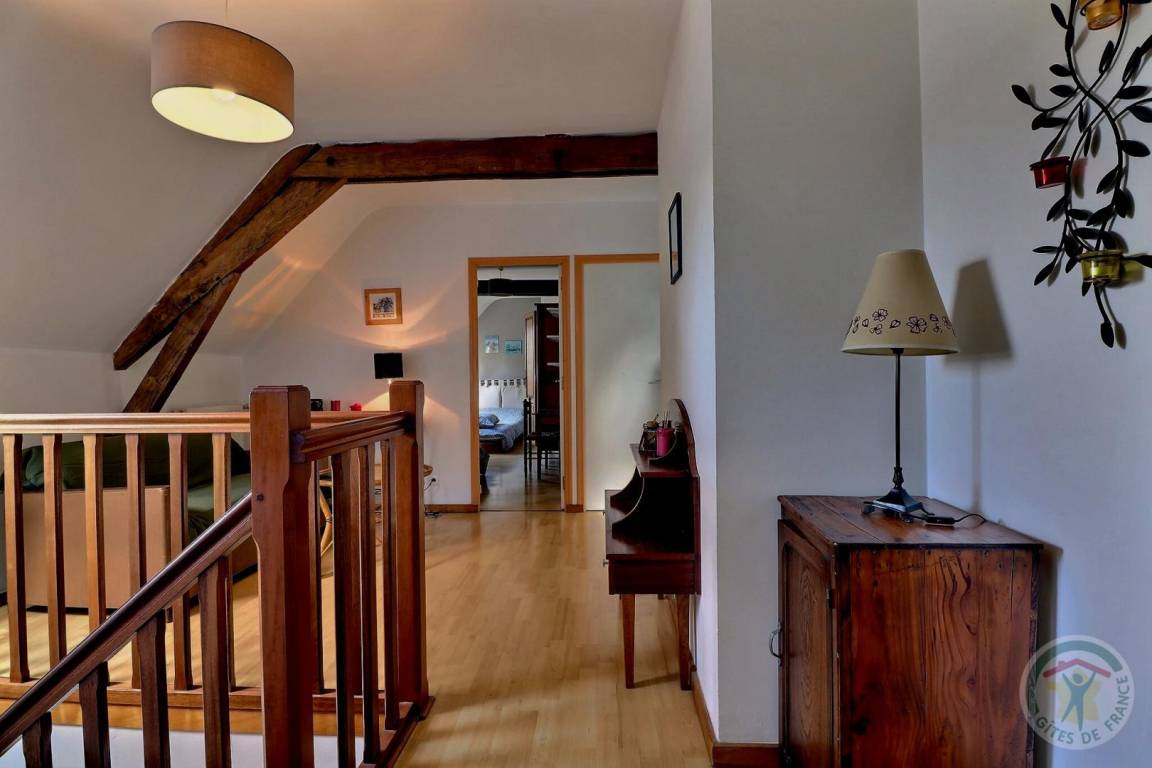 Im EG: Esszimmer mit Zugang zur Terrasse, separate Küche, Wohnzimmer separat mit nutzbarem Kamin. Kleiner Waschraum (WC und Handwaschbecken). Stockwerk: 1 Schlafzimmer (1 Doppelbett - Dusche und Waschbecken), 1 Schlafzimmer (1 Doppelbett), 1 Schlafzimmer (2 Einzelbetten), 1 Schlafzimmer (2 Einzelbetten) - Badezimmer - WC separat. Wohnzimmerecke mit Sesseln. Gas-Zentralheizung. Haustiere willkommen je nach Beschreibung.
