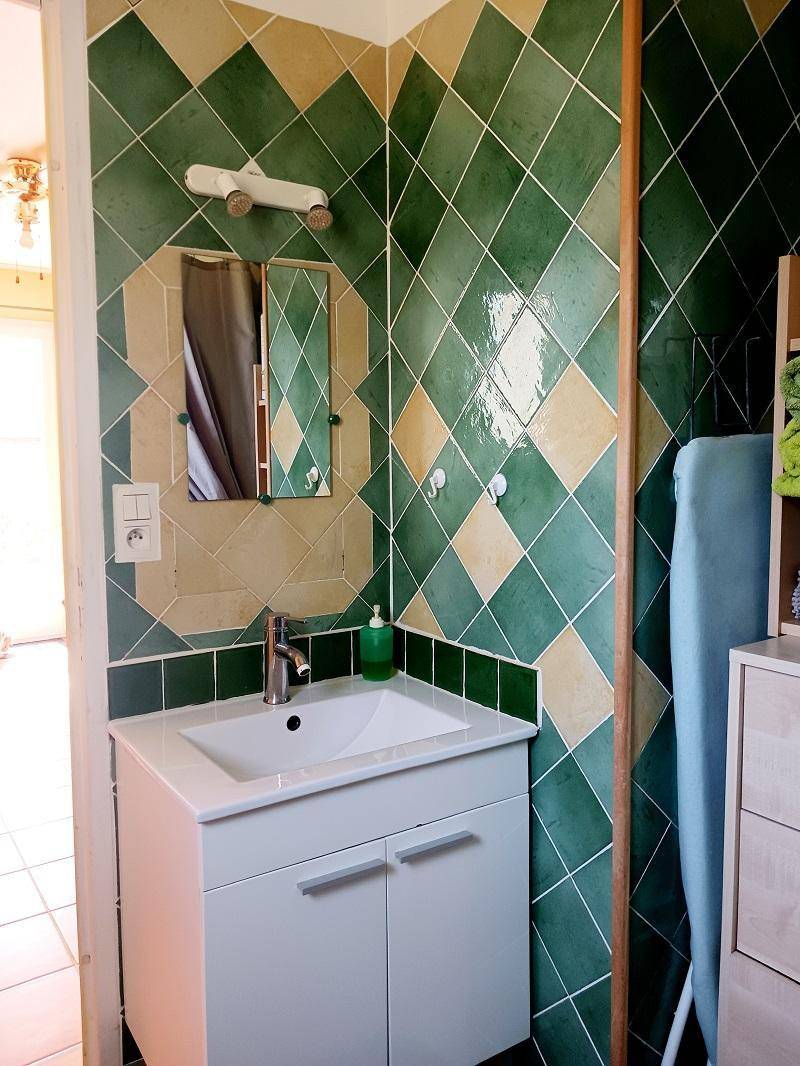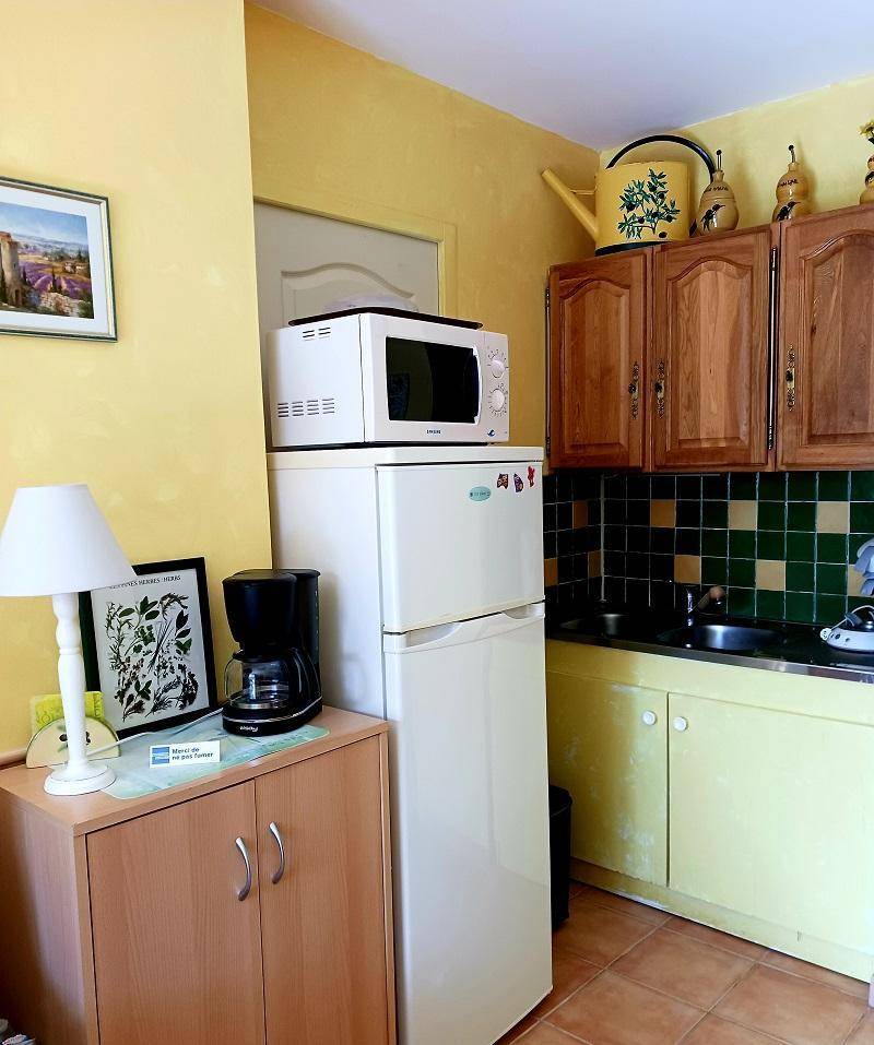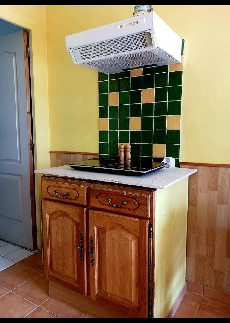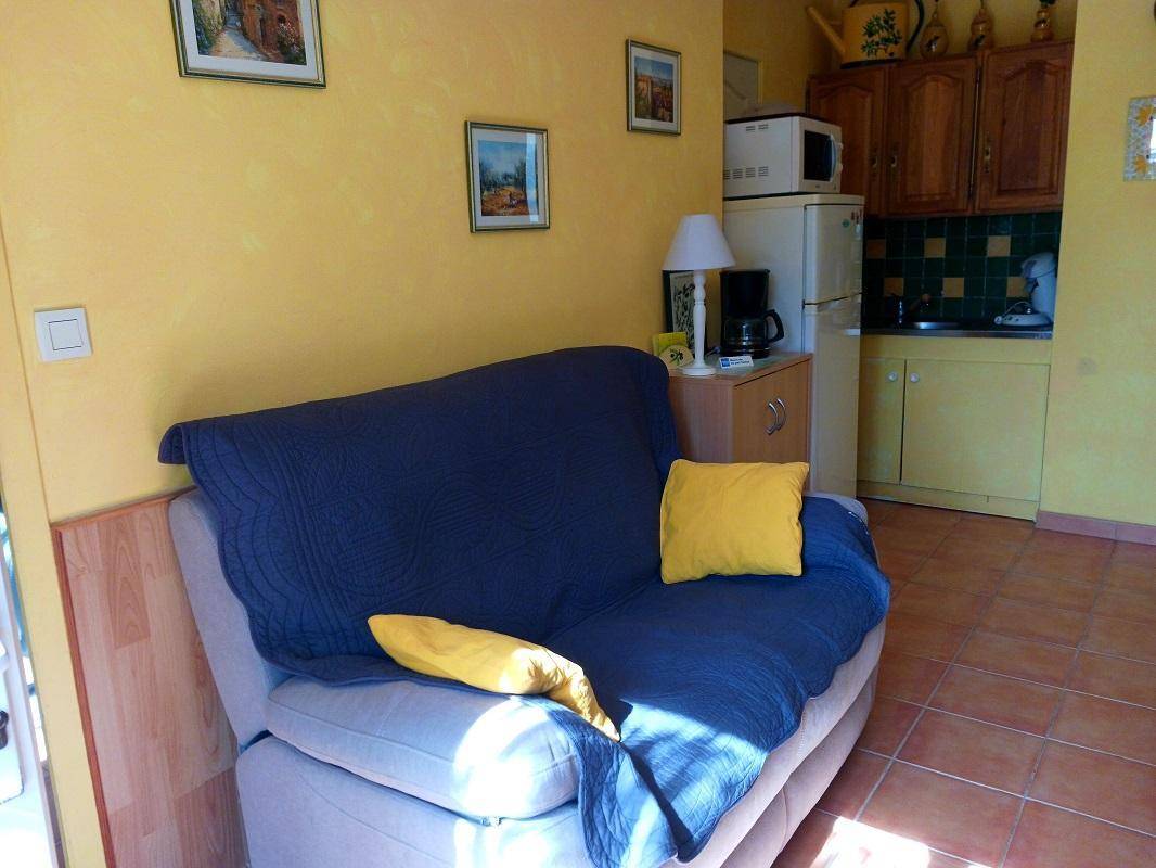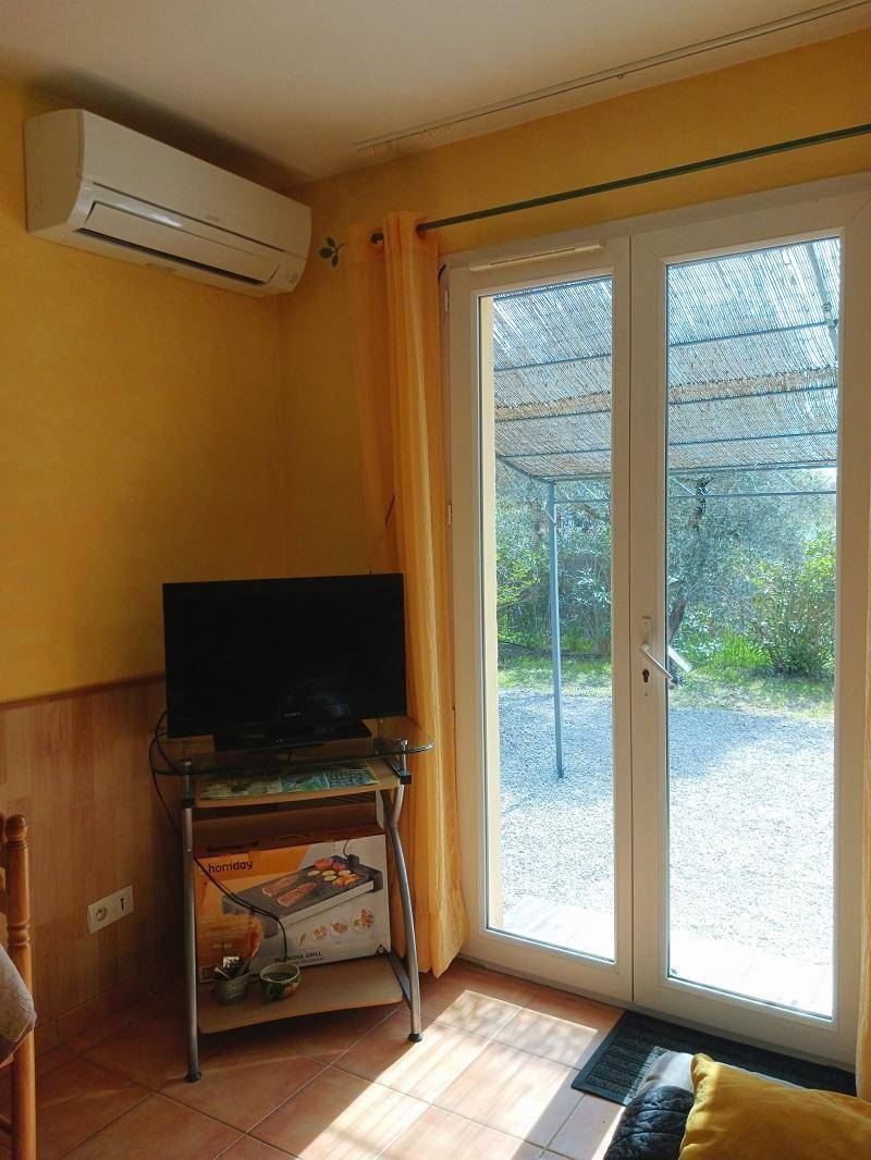 Erdgeschoss: Eingang, Wohnzimmer mit Kochnische, 1 Schlafzimmer mit 1 Bett 2 Pers in 140cm, Badezimmer mit wc. Elektrische Heizung. Mobile Klimaanlagen. Der Besitzer bietet seine Waschmaschine ein bis zwei Mal pro Woche.