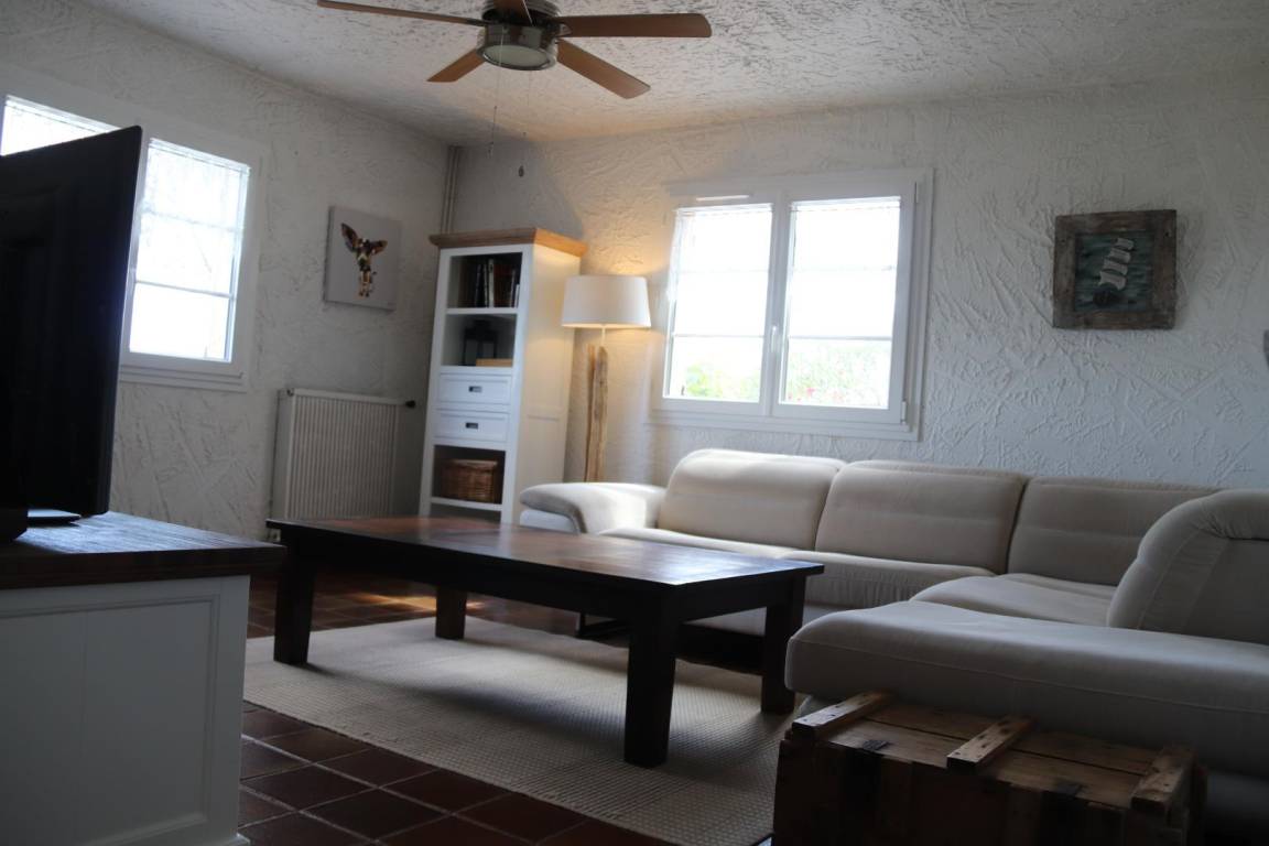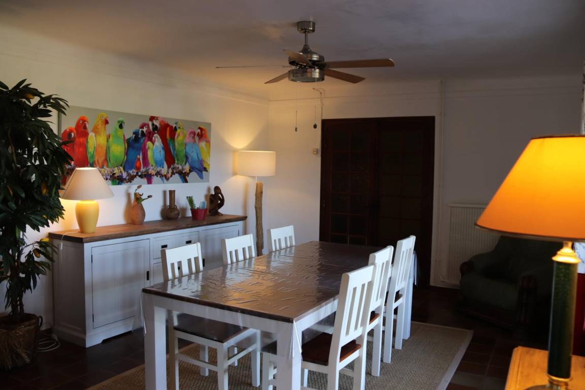 „Salle de bain un peu petite. Les cactus devant la terrasse sont dangereux pour les enfants. Le tapis sous la table de séjour ne facilite pas le ménage. Le changement des portes et fenêtres avec moustiquaires: Super.“