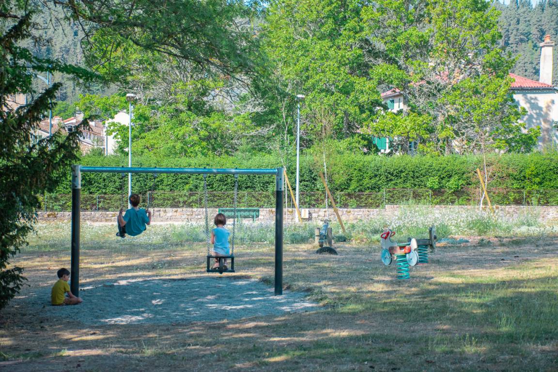 „Village bien équipé dans un complexe sportif près de la rivière La Truyère, promenades accessibles depuis le centre du village.“