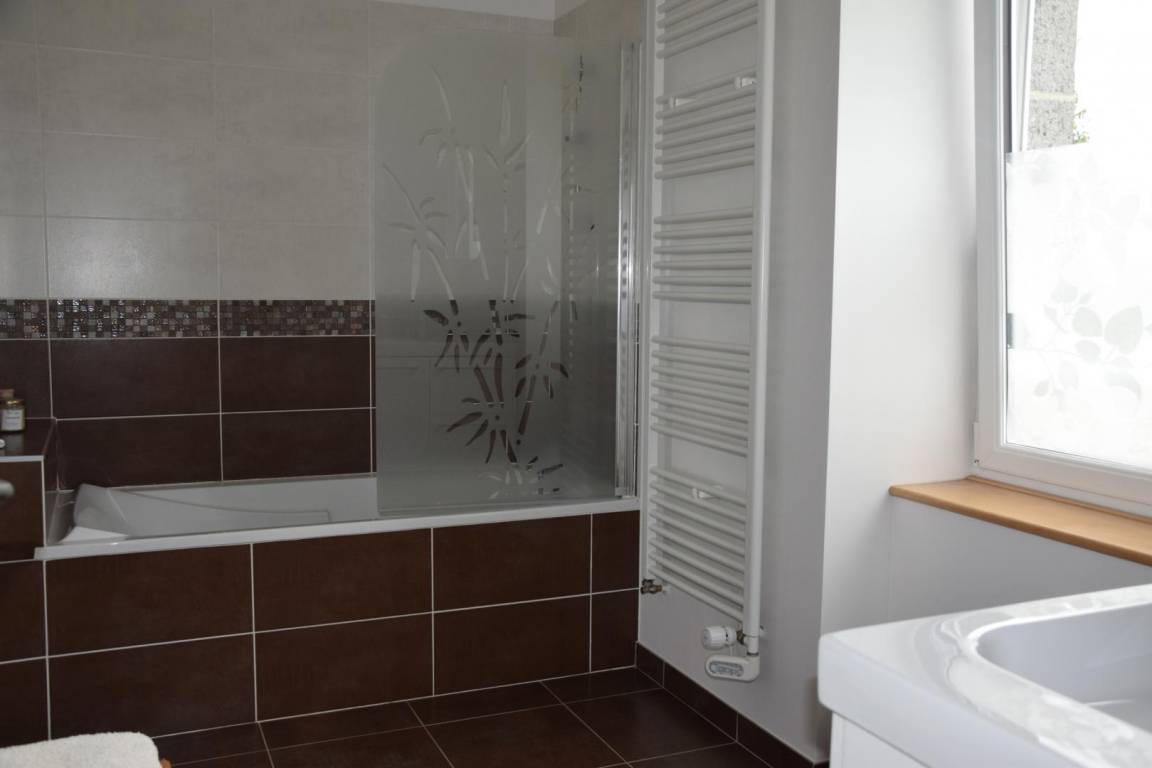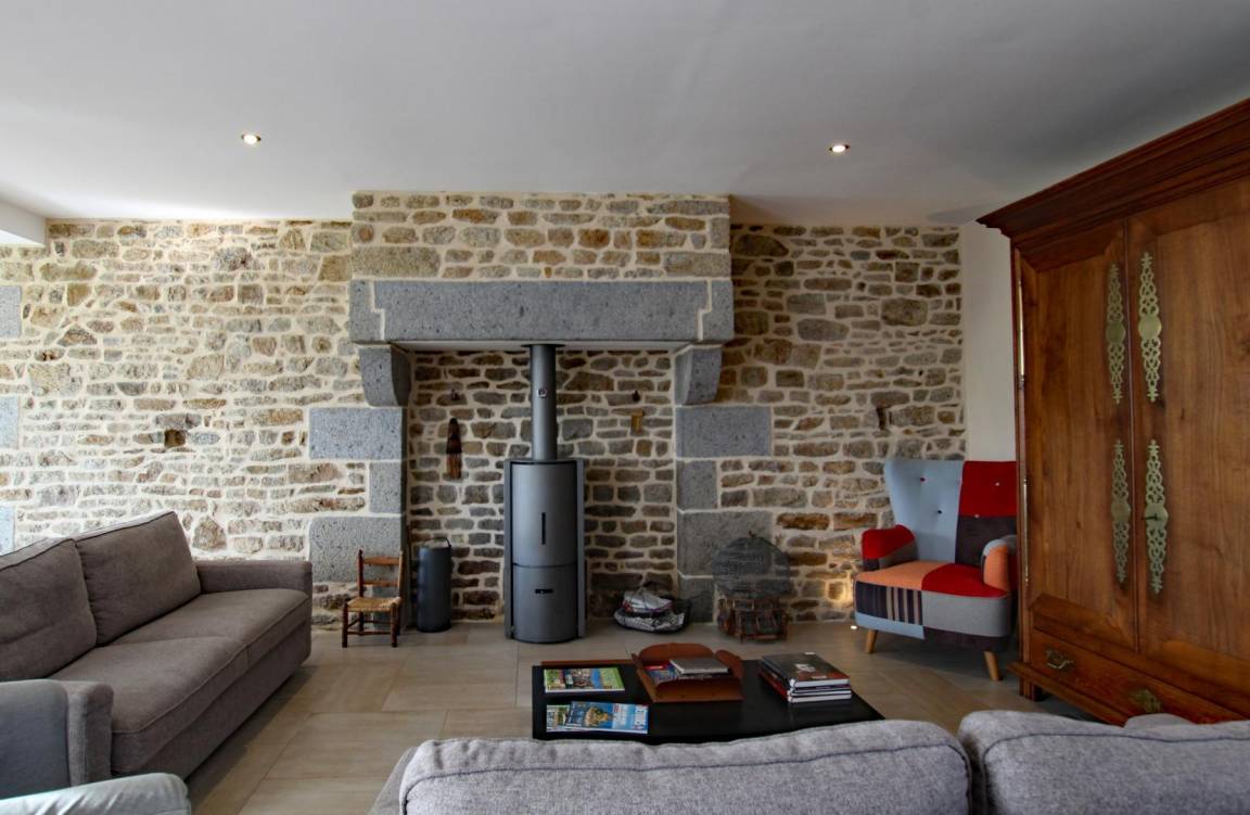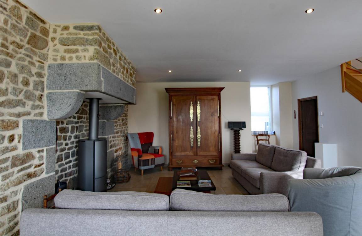 Freistehendes Haus. Wohnzimmer mit Holzofen (TV, DVD, Stereoanlage, WLAN). Offene Küche (Backofen, Induktionskochfeld, Geschirrspüler, Kühlschrank mit Gefrierfach, Mikrowelle, Espressomaschine). Waschküche (Waschmaschine). Schlafzimmer 1 (Bett 160x200) mit eigenem Duschraum und WC. Obergeschoss: Schlafzimmer 2 (2 Einzelbetten 80x200 und ein Bett 90x190), Badezimmer mit Badewanne, separates WC, Schlafzimmer 3 (2 Einzelbetten 80x200) mit Holzofen, Ankleideraum mit WC und Waschbecken. Babyausstattung auf Anfrage. Fußbodenheizung im Erdgeschoss, Heizkörper im Obergeschoss. Alle Nebenkosten inbegriffen. Bettwäsche und Handtücher werden gestellt (Bett bei Ankunft gemacht, ein Handtuch pro Person + Badematte). Reinigungsservice optional. Großer privater umzäunter Garten. Terrasse. Gartenmöbel, Sonnenschirm und Sonnenliegen. Grill. Raclette-Gerät. Carport mit 2 Stellplätzen. Stromanschluss auf Anfrage erhältlich. Nichtraucher-Ferienhaus.