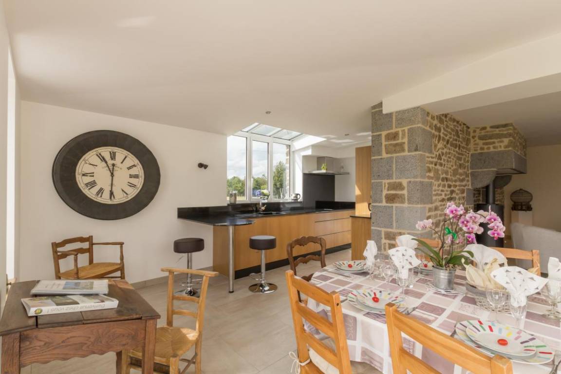 „La maison est parfaite pour 4 à 6 personnes. La pièce à vivre est grande et lumineuse. Quant à l'environnement, rien a redire, le calme absolu règne dans ce joli village. C'est idéal pour un séjour reposant à la campagne avec de jolis coins à découvrir aux alentours. Entre Normandie et Bretagne le choix des sites touristiques ou non est vaste !“