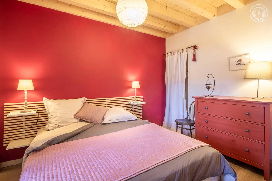 Ferienhaus in einem Haus, das an das der Eigentümer grenzt. 1. Stock (unabhängiger Zugang über eine Außentreppe) bestehend aus einer Eingangshalle, 2 Schlafzimmern (2 Etagenbetten 90 x 190 cm / 1 Doppelbett 160 x 200 cm), einer Wohnküche (Mikrowelle kombinierter Grill) Loungebereich ( Schlafsofa für 2 Personen und Bluetooth-Lautsprecher) mit Holzofen, ein Badezimmer mit WC (halbitalienische Dusche). 2 Balkone, privates Grundstück 500 m². Gemeinsamer Keller mit privater Waschmaschine und Trockner im Ferienhaus (Zugang von außerhalb des Ferienhauses)