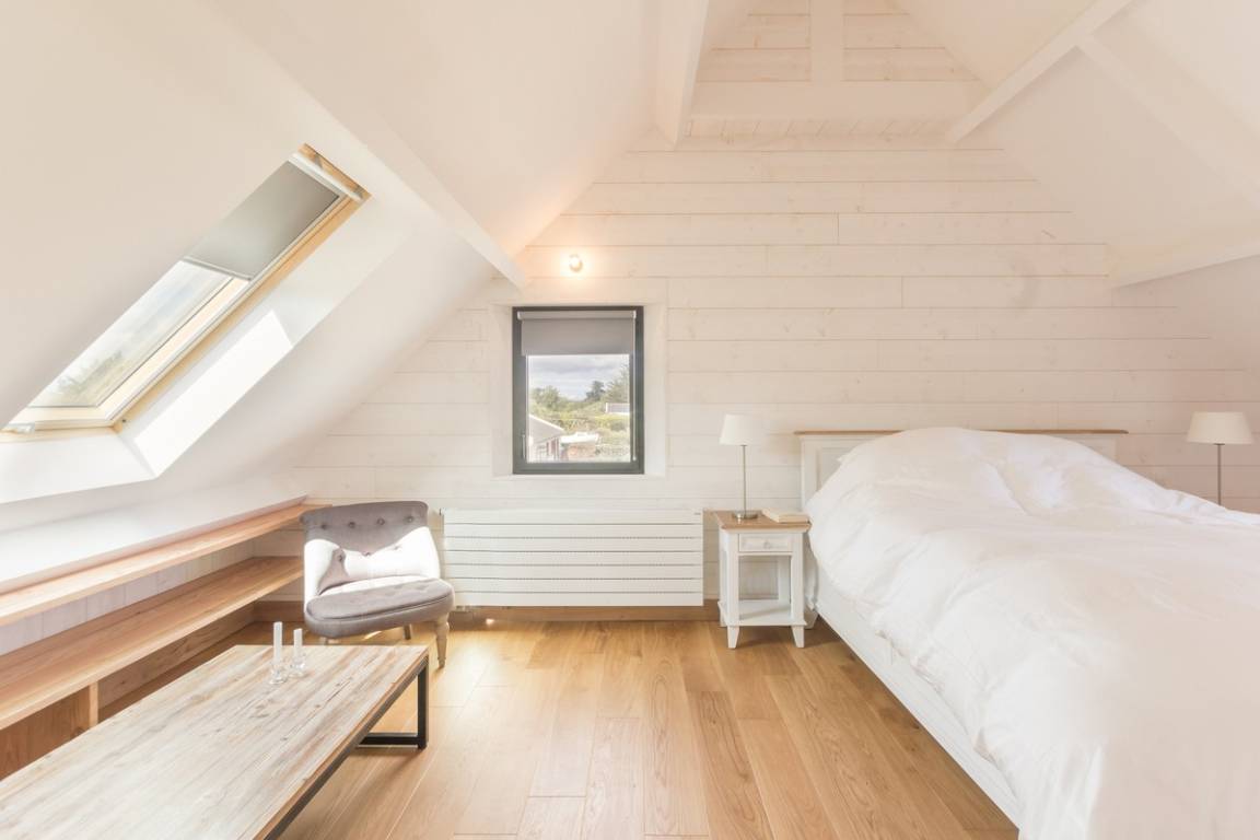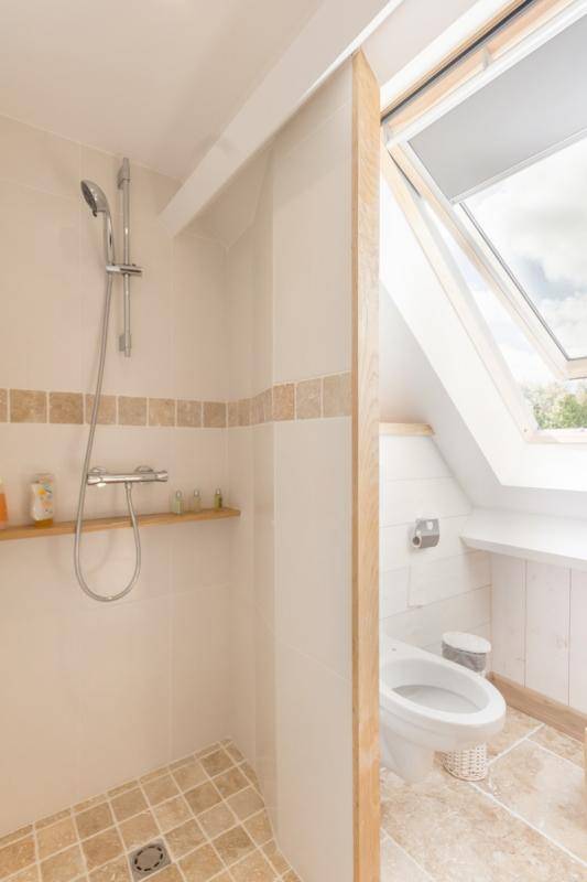 Im Erdgeschoss: Wohnzimmer/Lounge/Küche, WC, 1 Schlafzimmer (1 160x200-Bett) mit eigenem Duschbad und WC.